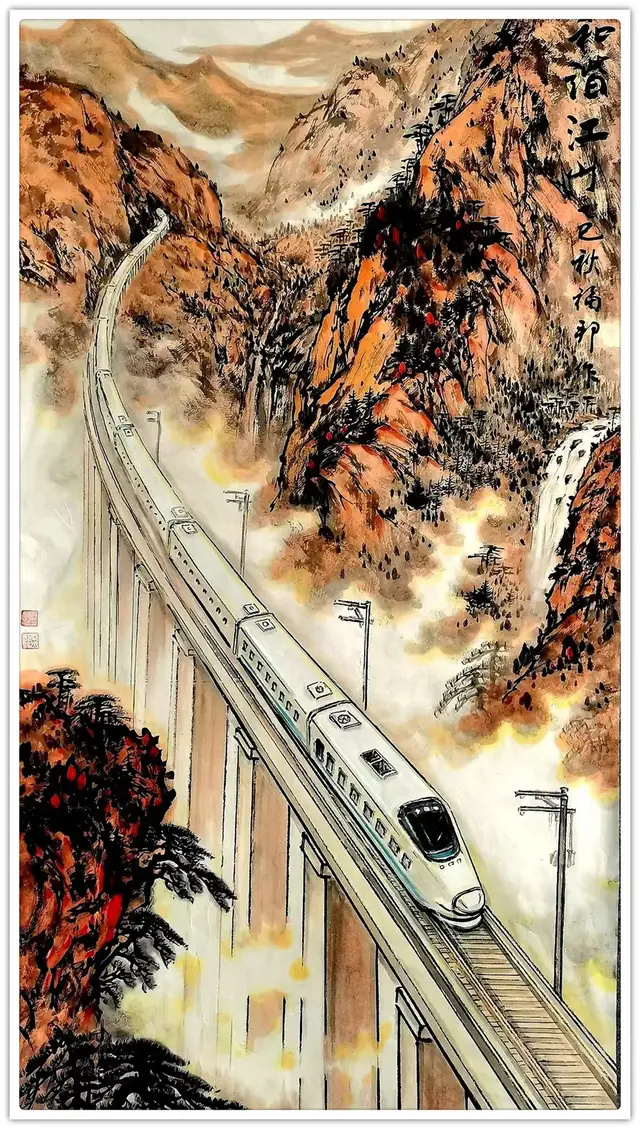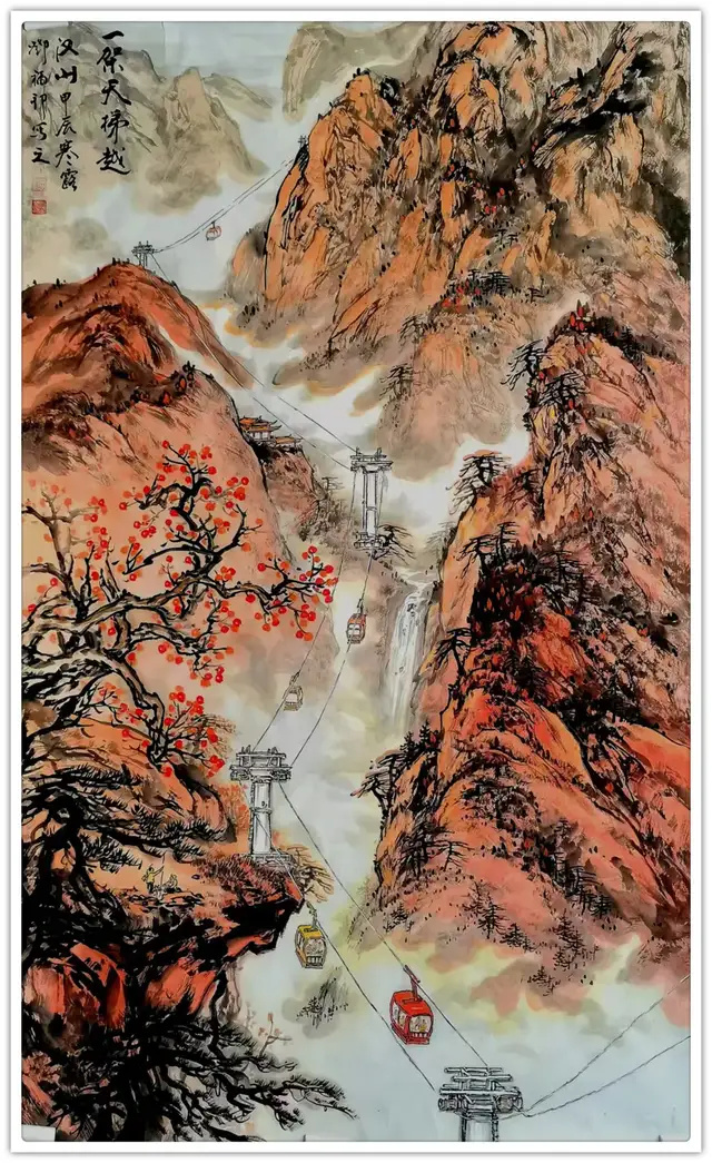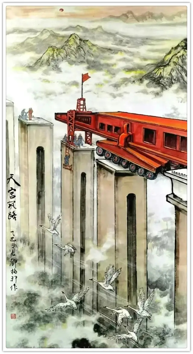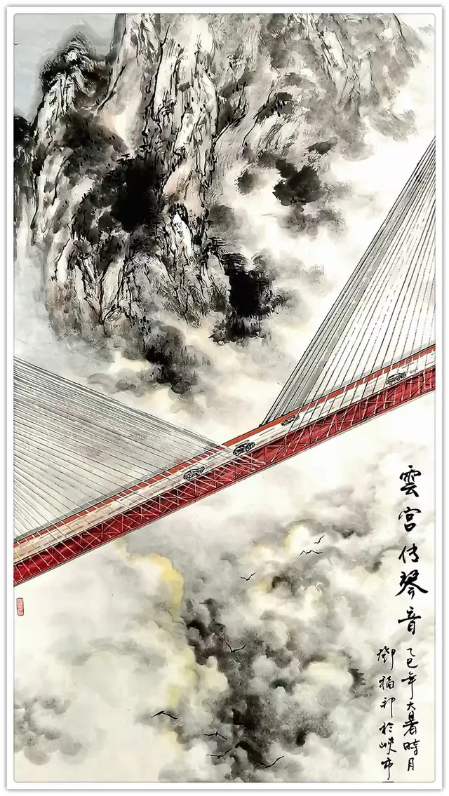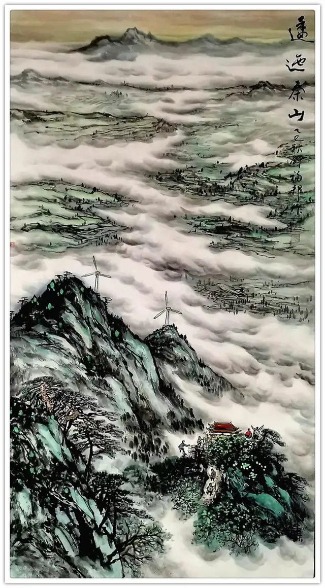 中国书画是中华文明“天人合一”哲学的视觉表达。其魅力在于以形写神的凝练表达。邓福邦的艺术成就恰是中华文明特质的生动注解。他承谢赫“六法”之精髓,融南北画风之气象,用现代光影重构山水空间;集诗书画印之雅韵,在长卷中铸就“多元一体”美学;以《家居秦山》系列传递“天人共生”的和平理念。他与夫人书法家张云霞联袂创作的七十米长卷《黄河明珠三门峡》珍藏于三门峡博物馆,成为民族精神的物化载体;作品作为国礼赠予多国政要,使秦山云涛化作“和衷共济”的外交语言。