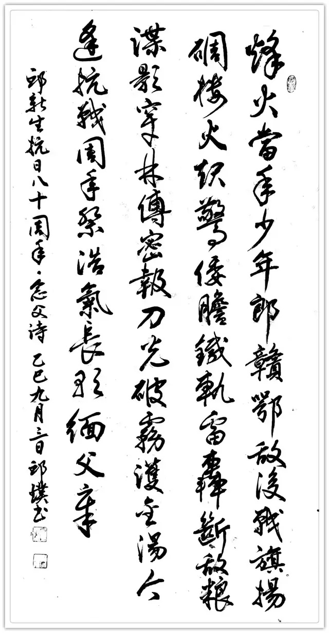 邱璞的书画创作,始终以文化根脉为坚实基石,以时代精神为灵动笔锋,于笔墨纵横间搭建起传统与现代深度对话的艺术场域。其笔下遒劲有力的线条,既赓续着千年书画的雄浑筋骨,又暗合当代审美的简约韵律;灵动变幻的墨色,既晕染出文人的悠远意境,又折射出都市文明的深邃哲思。这种“守正创新”的艺术语言,精准契合当下藏家对“价值典范”的深层诉求——既具备深厚的文化底蕴,又拥有独特的市场稀缺性。