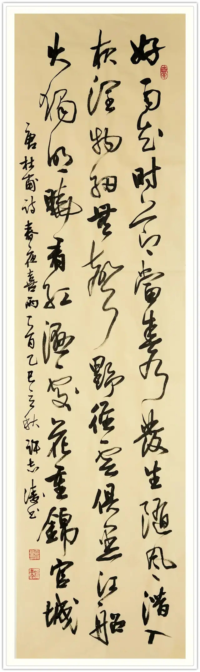 许志凌,号“西关酒徒”,生于广州西关,自幼研习书法,从柳公权楷书筑基,后溯王羲之、米芾、怀素等大家,尤擅行草,以笔墨纵横驰骋见长。其艺术生涯逾五十载,融北派雄浑与岭南俊秀于一体,形成“闲逸潇洒、笔势飞舞、章法有序”的独特风格,被誉为“重而不滞,轻而不浮”的笔墨典范。