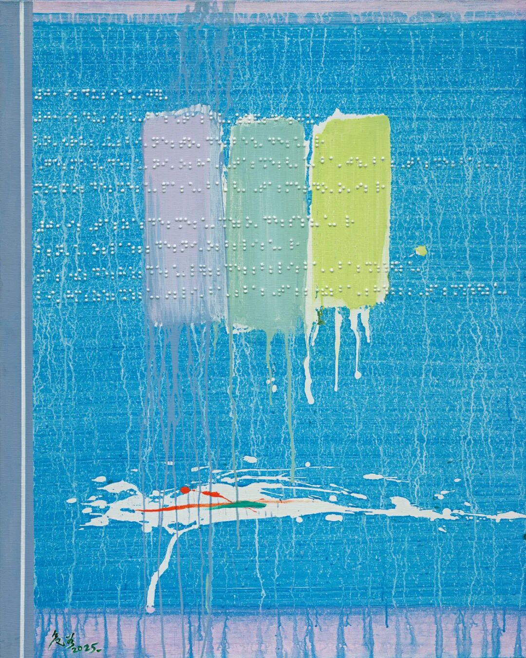 《启心·山水简》自作诗中文盲文)布面丙烯