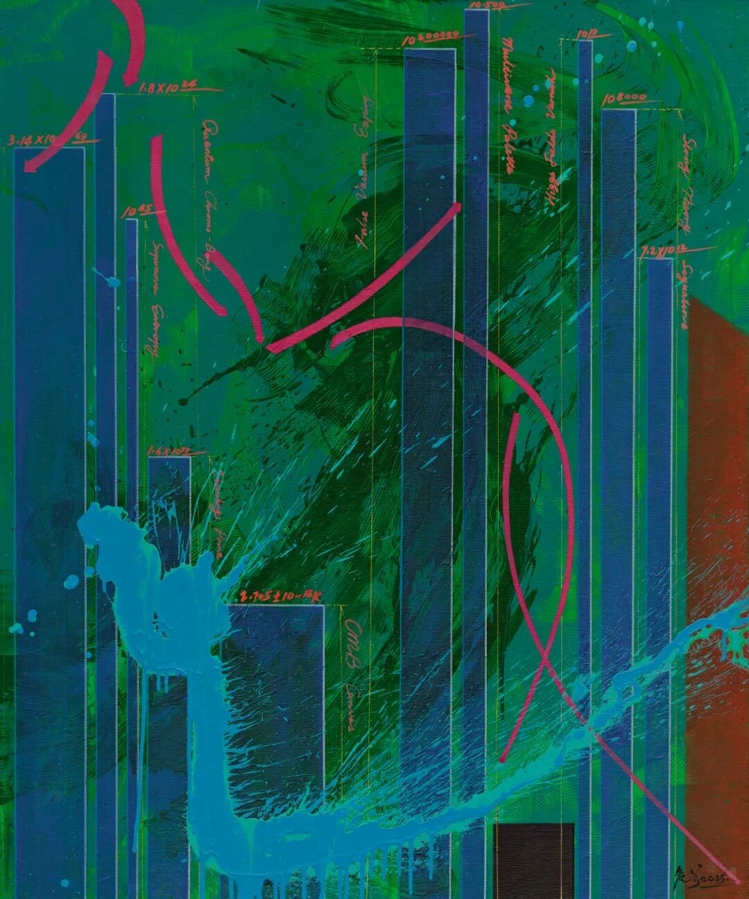 从哲学层面审视,这四个系列构成了一个完整的认知体系:《脉动》对应身体书写,《秘境》指向自然书写,《冥想》探索宇宙书写,《启心》则触及代码书写。这种从微观到宏观的演进,实际上构建了一种"艺术宇宙论",将现象学的身体知觉扩展为对宇宙秩序的审美把握。尤其值得注意的是,作品通过对"不可读性“这一问题的持续执念,既对数字时代信息过载做出回应,也对存在本质予以深刻追问——当原本意义被悬置时,生命和艺术如何证明自身存在价值?