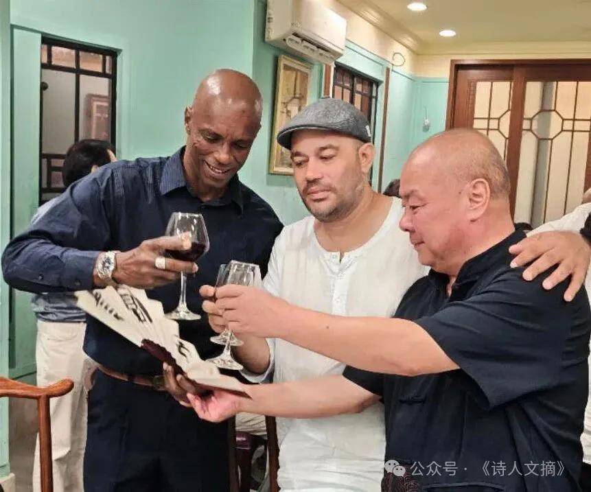 诗人陈泰灸向古巴诗人赠送画扇