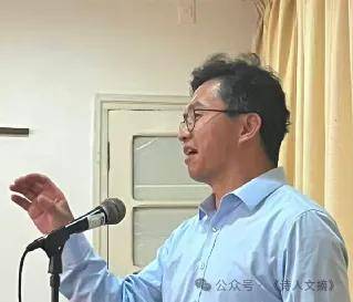 接下来由费雷尔主任致辞。他说:“今日,诗歌再次召唤我们。它足以让我们投身于共同的集体创作,值得我们在石头上留下自己的刻痕。不同年代的作家齐聚一堂,旨在相互了解,探讨各自或共同的兴趣,并最终享受一场中国受邀诗人作品的朗诵会。还有什么比一首诗、一串转化为诗句的感受更能让我们相识?或许有,但于我们而言,一个精彩的隐喻便已足够。从此,我们携手踏上新的征程,汇聚目光、文字与行动,为他人传递前辈遗留的讯息,并谦逊地添上自己的笔墨。”