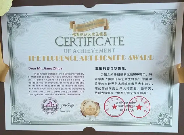 获联合国教科文等组织颁发的:国际艺术节金鹰奖、联合国文化与和平使者勋章、国际艺术最具影响力人物及联合国外交艺术顾问聘书。并且获联合国安理会等组织颁发的:国际诗书画艺术节最佳创意奖、一带一路最佳艺术之星、国际艺术领袖人物、一带一路和平艺术家勋章。2025年6月获联合国教科文等组织颁发的:世界艺术终身成就奖、国际金牌艺术家奖牌及世界级艺术博士高级职称证书。同年7月再获联合国教科文等组织颁发的:国际艺术领袖和福布斯国际艺术最高荣誉奖杯。