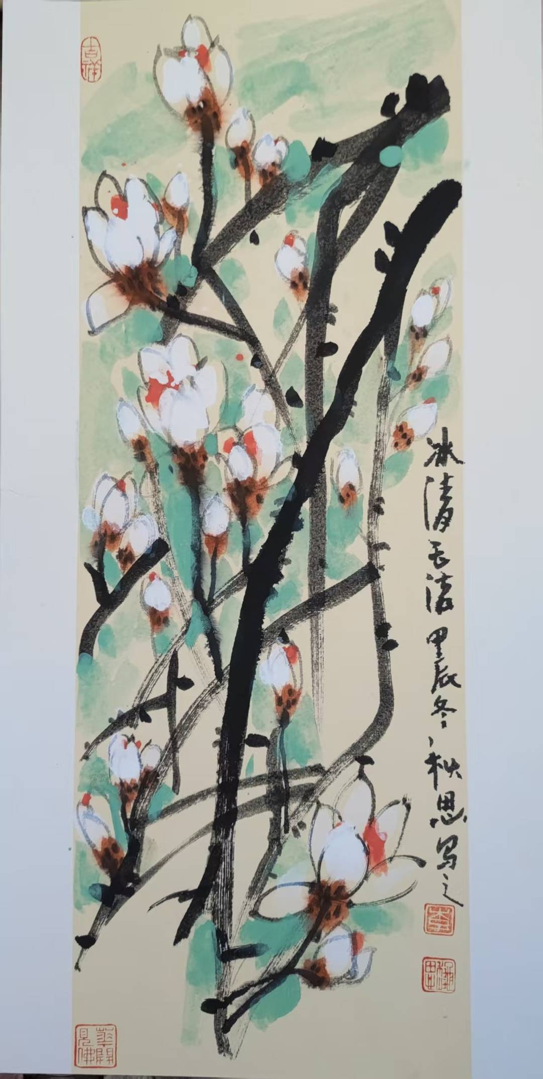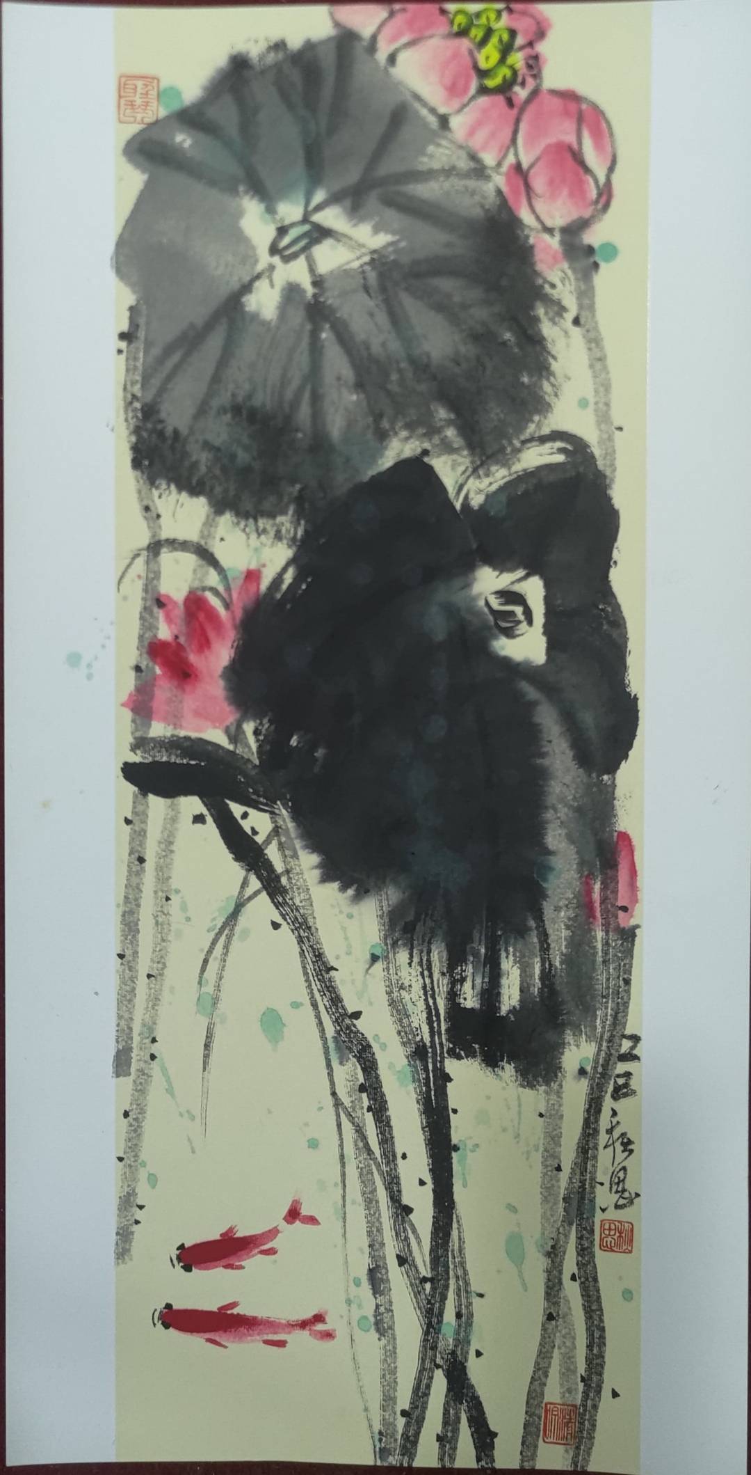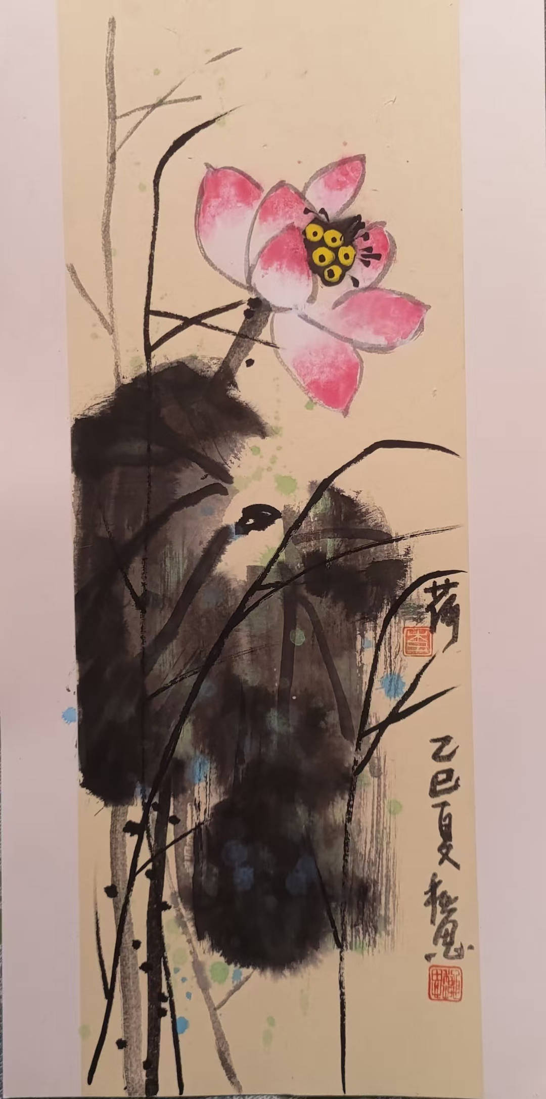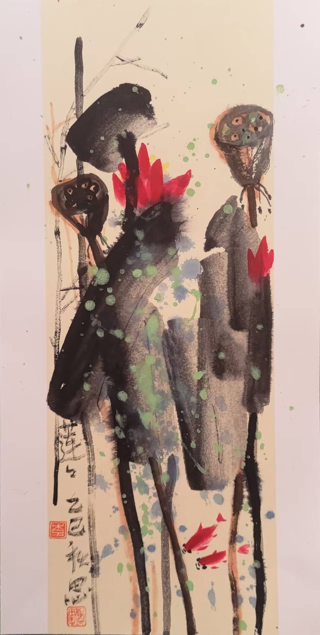 多年来的学习让我不断进取,画艺大进。2025年大写意花鸟作品《映日荷花别样红》获国际女艺术家网络展金奖,2025年四尺整张大写意花鸟作品两幅《和和美美大家园》《繁荣富强 和谐统一》被高密市档案馆永久收藏。