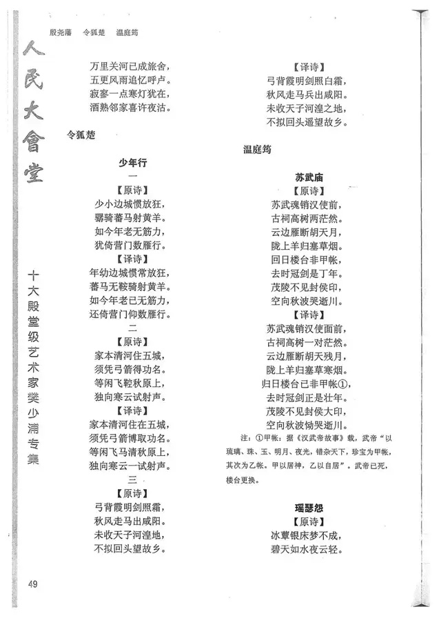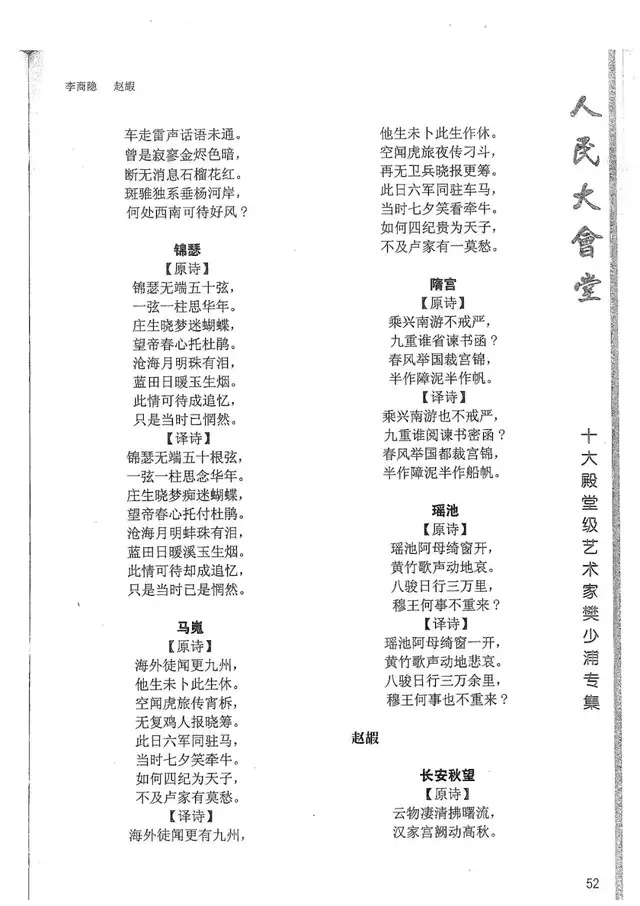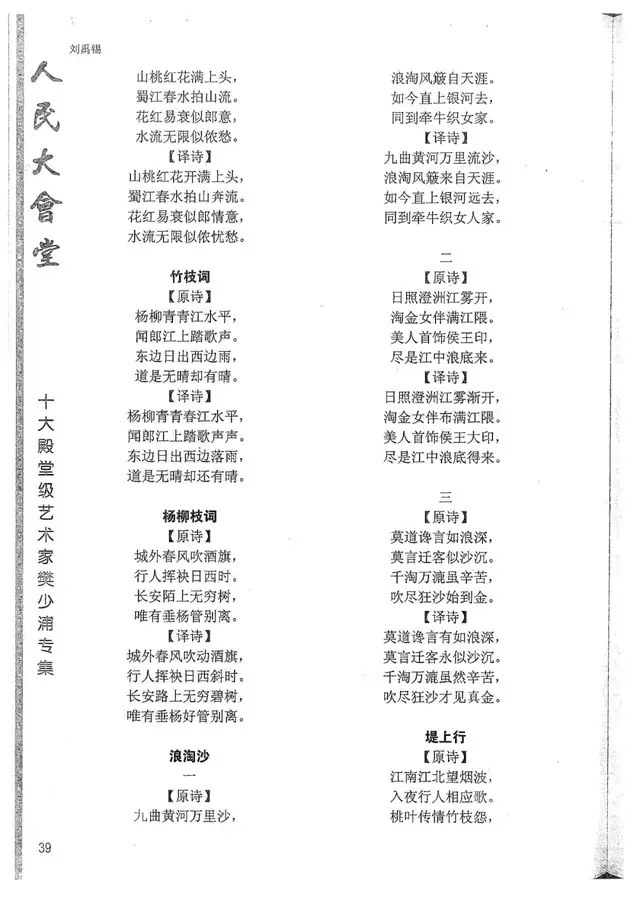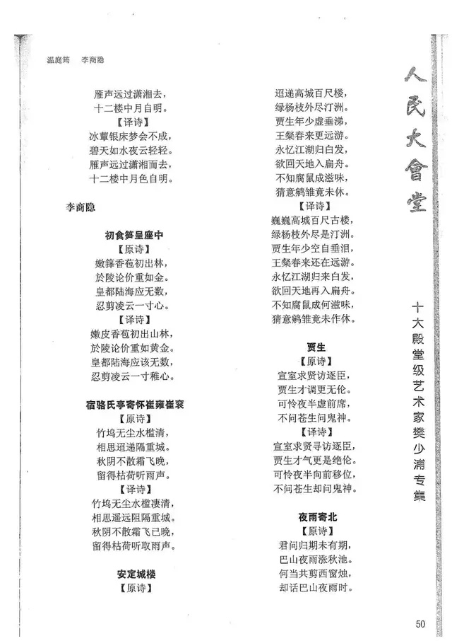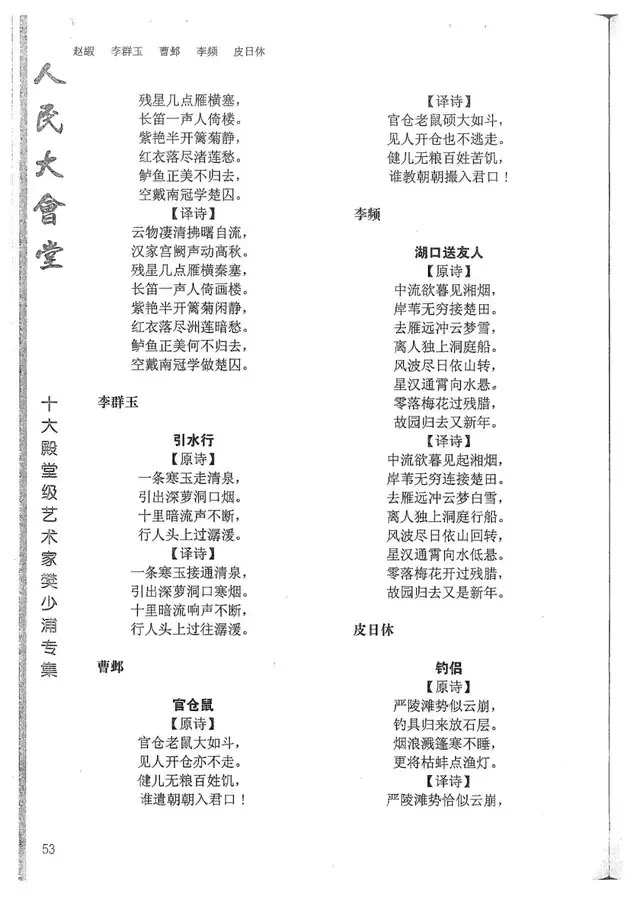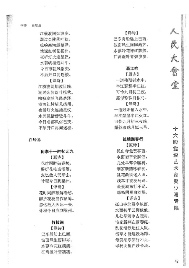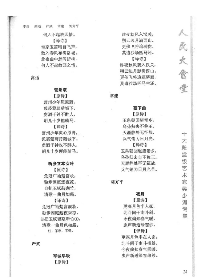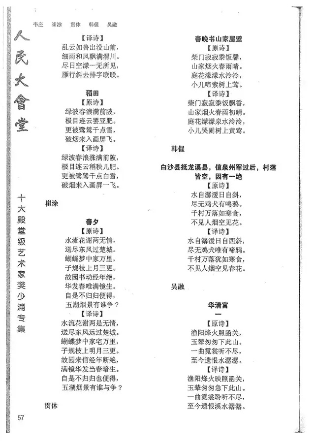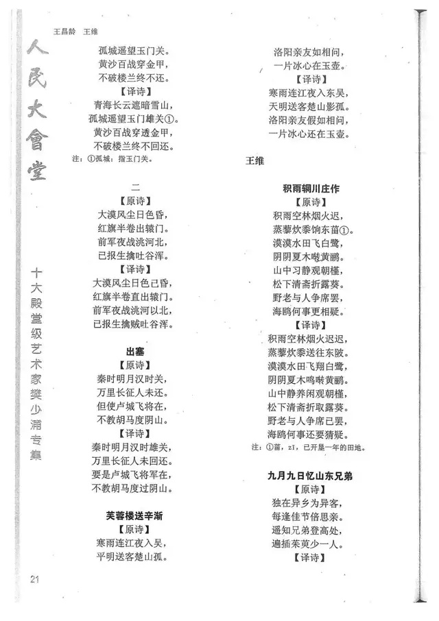 樊少浦《唐诗别译》(修订版)的显著特点在于:传"真”与变"新”的合谐统一。即既尊重原作,最大限度地保畄其原始经典形态,又以自创的八言律丶绝为载体,注入新的时代元素,从而打造古典诗歌的当代版。