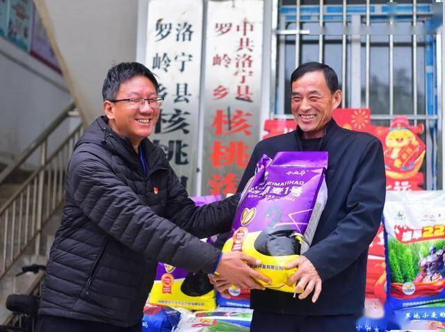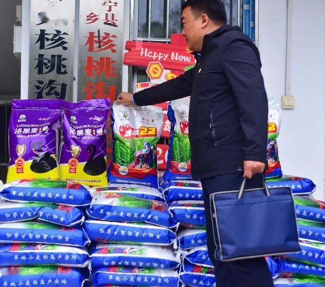 10月14日上午,洛阳市农林科学院的九位工作人员,在院党委委员、副院长张宝的带领下,将小麦种子与复合肥送至洛宁县罗岭乡核桃沟村。