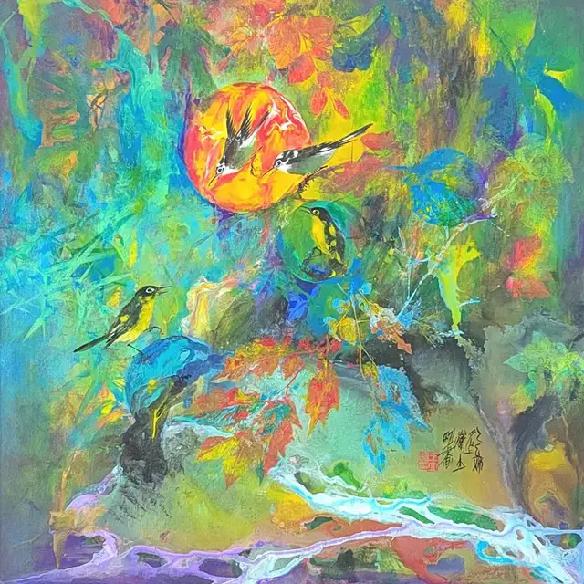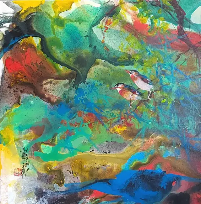 先生作品最动人之处,在于“以心为源”的创作内核。他不囿于技法堆砌,敢于将生活体验与真挚情感全然融入笔墨:小到市井烟火、花木禽兽,大到山河气象、人文意趣,皆能在画中留下鲜活且独特的个性印记。笔下线条或劲挺、或灵动,皆能传神;设色雅致却饱含温度,无论是工笔的精致入微,还是写意的气韵流转,都做到了“形神兼备”——花瓣脉络、禽鸟羽纹尽显笔墨功底,而画面中跃动的生机与丰沛的情感,更让观者产生超越视觉的精神共鸣,真正实现“画中有情,境中有意”。