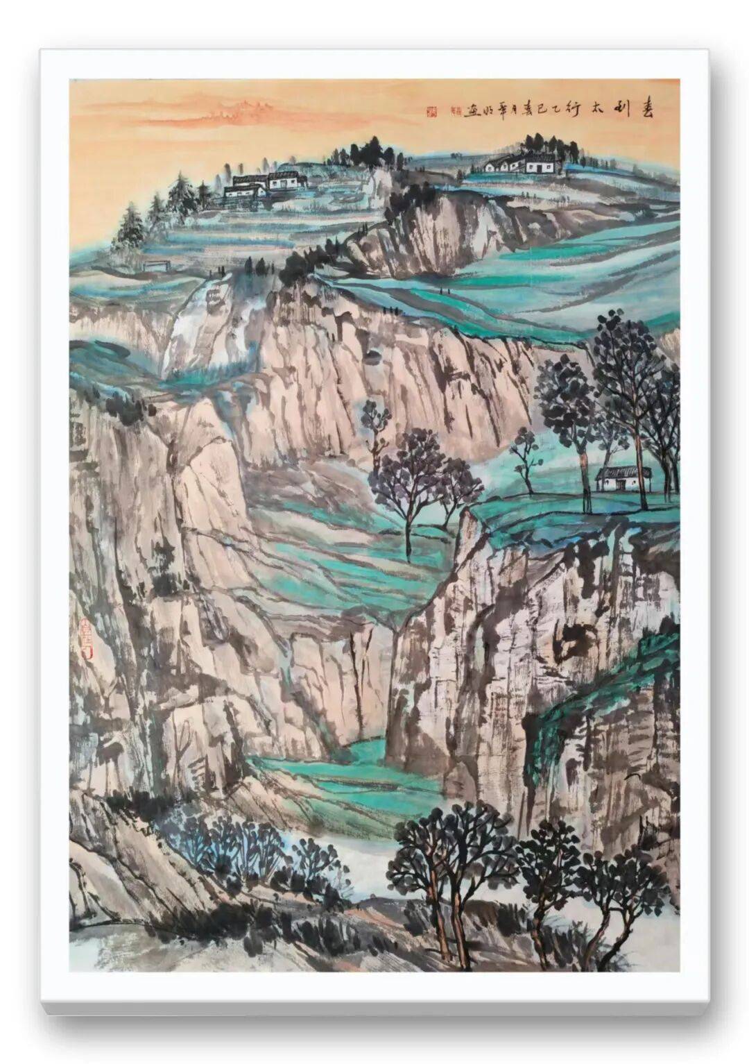 聂华明老师的山水画,更蕴含着对自然与生活的深情体悟。中国山水画向来强调“外师造化,中得心源”,画家需从自然中汲取灵感,再通过内心的感悟转化为艺术形象。聂老师的作品,无论是描绘雄浑的太行山脉,还是展现宁静的山村景致,都能让人感受到他对自然的细致观察与真挚情感。那连绵的太行山峰,云雾缭绕,山间点缀着几处屋舍与树木,既展现出太行山的雄伟壮阔,又流露出一种人与自然和谐共处的温情。画中的每一座山峰、每一条溪流,都仿佛是他亲自踏足、用心感受过的,这种源于生活的真实感,让他的作品具有了打动人心的力量,也让传统山水画“畅神”的功能在现代语境下得到了新的诠释。