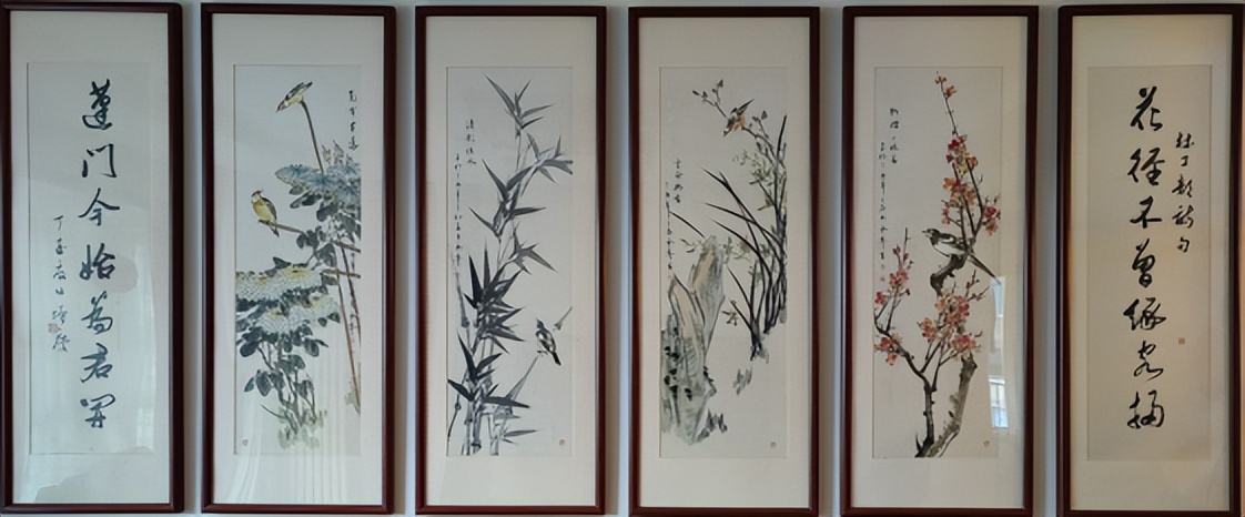 后来几天下雨,我不能到院子里去遛牛仔,便在家里陪他玩。我家里的客厅里挂着一套六条屏,中间是画家余彝先生画的梅兰竹菊,两边是由我的老师邢增庆先生书写的对联:“花径不曾缘客扫 蓬门今始为君开”。还有一幅是我的老师滕西奇先生书写的一张四尺的横幅,内容是:“遇事处之泰然,得意之时淡然,失意之时坦然,艰难曲折毅然,历尽沧桑悟然,凡事顺其自然。”我经常抱着牛仔认字、认画,发现教过两三遍以后,我只要一说“花径不曾缘客扫”他的眼睛便去看墙上的六条屏旁边的对联;我一说:“遇事处之泰然”他便去指墙上挂的横幅;我一说:“梅兰竹菊”他的脑袋便转向墙上的四条屏......。有时我还抱着他站在窗前看窗外飞的小鸟,有一天下午正好有5只灰喜鹊飞过,我便掰着小牛仔的手数了五个手指头,过后我问他:“有几只鸟飞过?”他竟然伸出了五个手指头。可见孩子是多么的聪明!