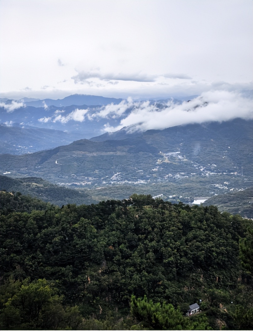 平台之上,凭栏而立,游目骋怀,只见远山如黛,绵绵不绝,药乡林场、鸡冠峰一线云雾缭绕,如诗如画;山下村舍星罗棋布,几许水面银光闪闪,壮丽河山美不胜收。风轻轻地吹,雾柔柔的腾,云慢慢地卷,一行人望着眼前的美景心旷神怡,目酣神醉。