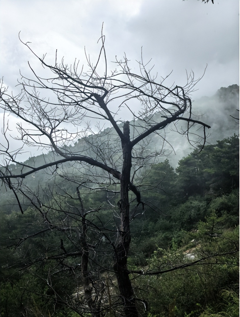 甩掉野猫的纠缠,在湿滑的台阶上,紧盯脚下,小心攀行;撑着登山杖小憩,不经意一瞥,山林中竟涌起淡淡云烟,随风舞动,缥缈梦幻。上到“好汉坡”顶,回望刚刚经过的“仙鹤湾”检查站,轻纱掩映,忽聚忽散,宛如仙境。这一刻,对那“云烟”、“梦幻”的词语,忽然间又有了新的领悟。