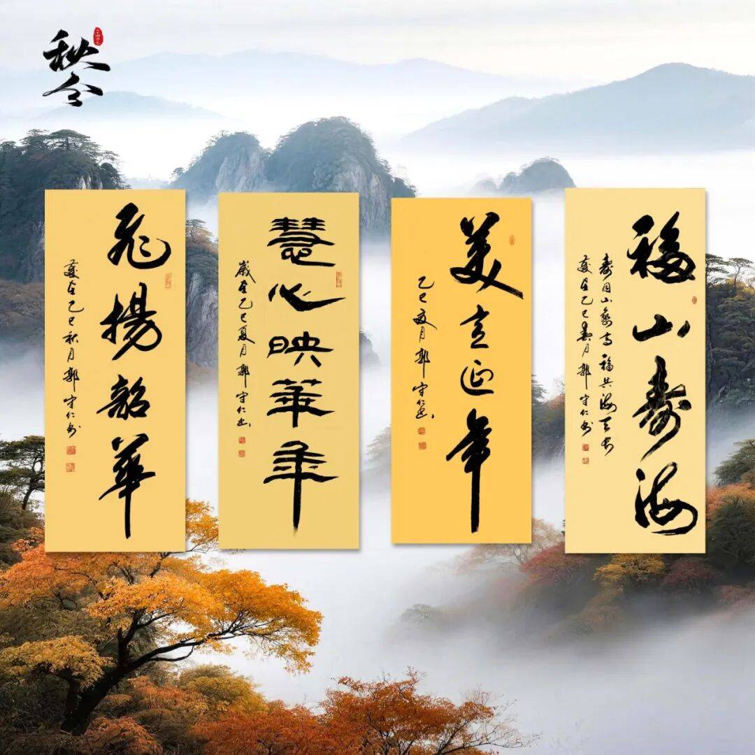 郭守仁先生的书法,不仅仅是线条与结构的组合,更是一种精神的流露。章法布局更是独具匠心,或疏密得当,或错落有致,或浑然一体,将书法的形式美发挥到了极致。如多幅作品中,字与字、行与行之间相互呼应,顾盼生姿,整体气息贯通,展现出一种和谐统一的艺术境界。这种个性风格的形成,是郭守仁先生在长期的艺术实践中,不断探索、创新的结果,也是他艺术修养与审美追求的集中体现。