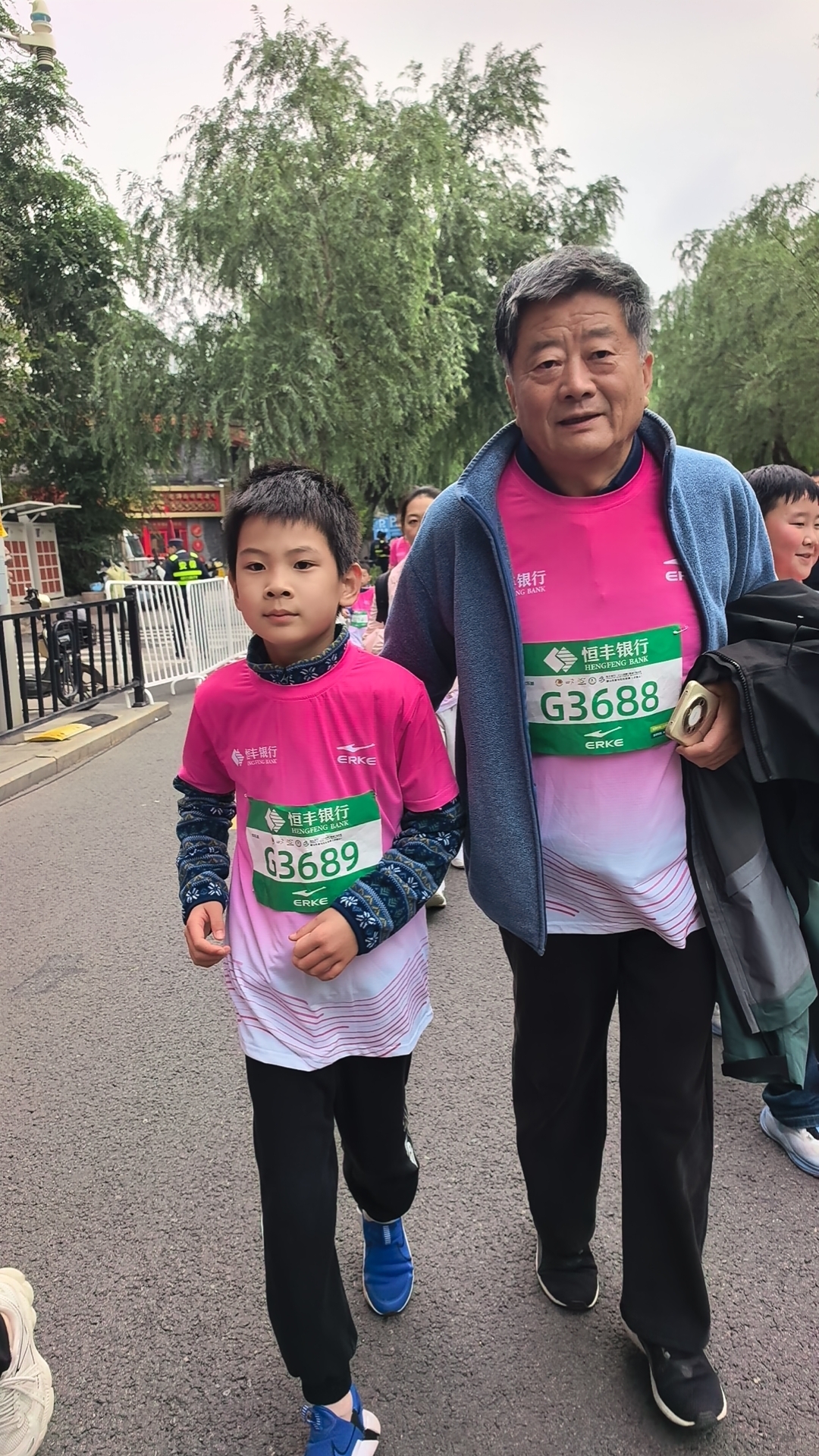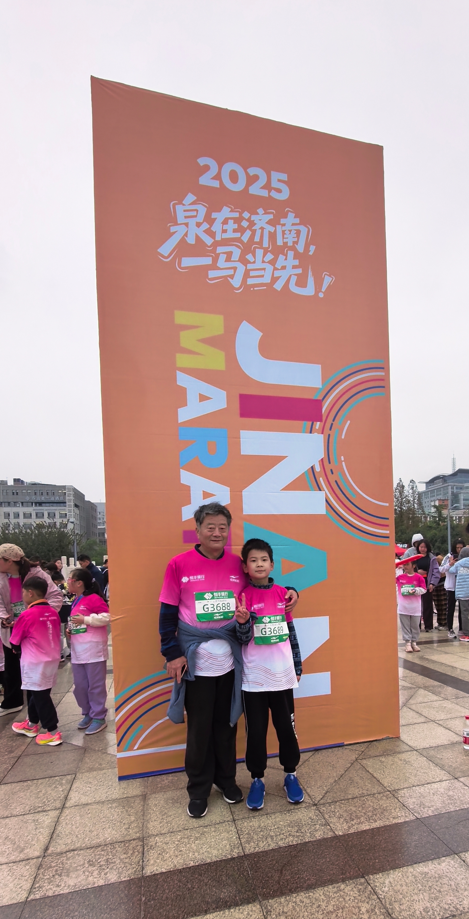 趵突泉边秋色裁,爷孙三代上跑阶。童蹄点地惊鸥起,霜鬓追风引客猜。