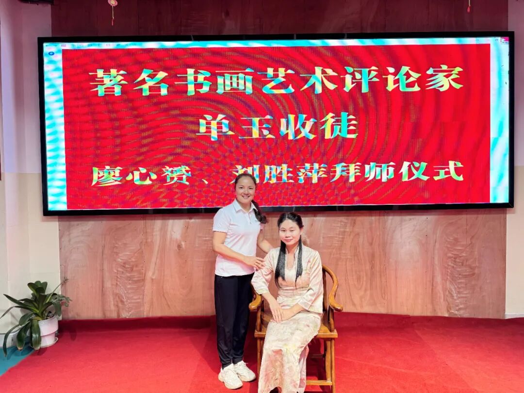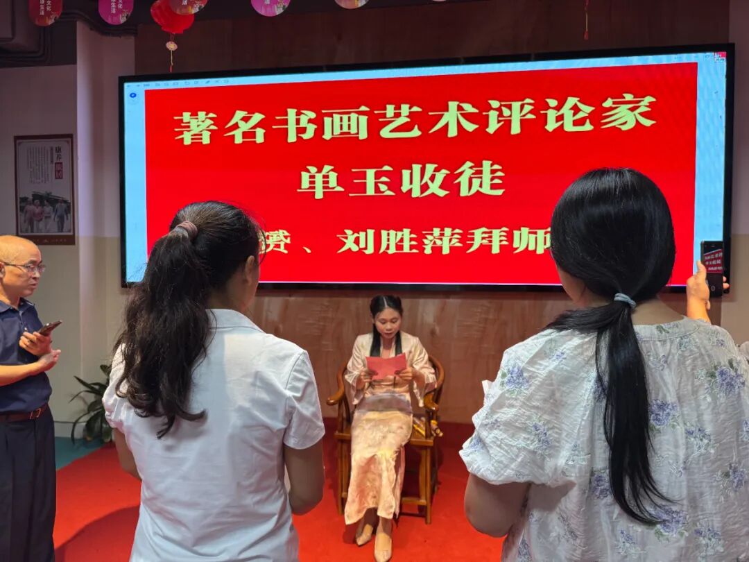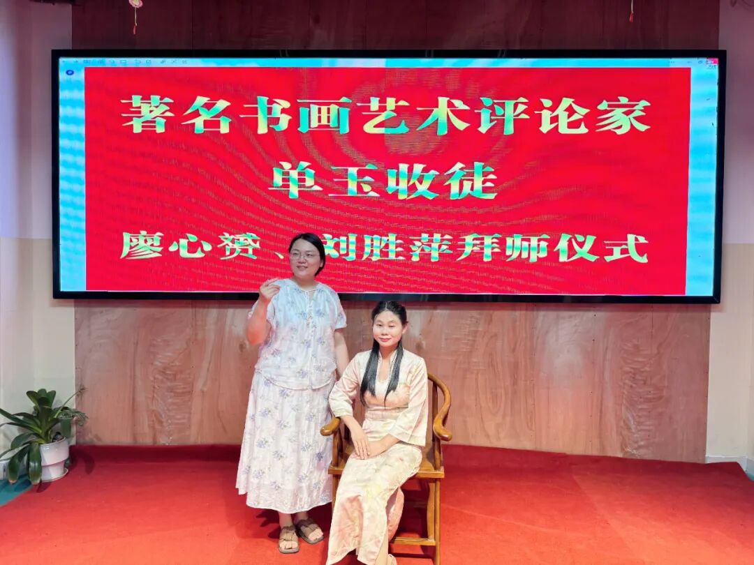 此次收徒,是单玉女士艺术生涯中具有里程碑意义的重要时刻。她秉持“以艺传道、以德育人”的理念,严格遴选两位品行端正、志趣高洁、热爱传统艺术的青年才俊——廖心赟与刘胜萍,正式纳入门墙。