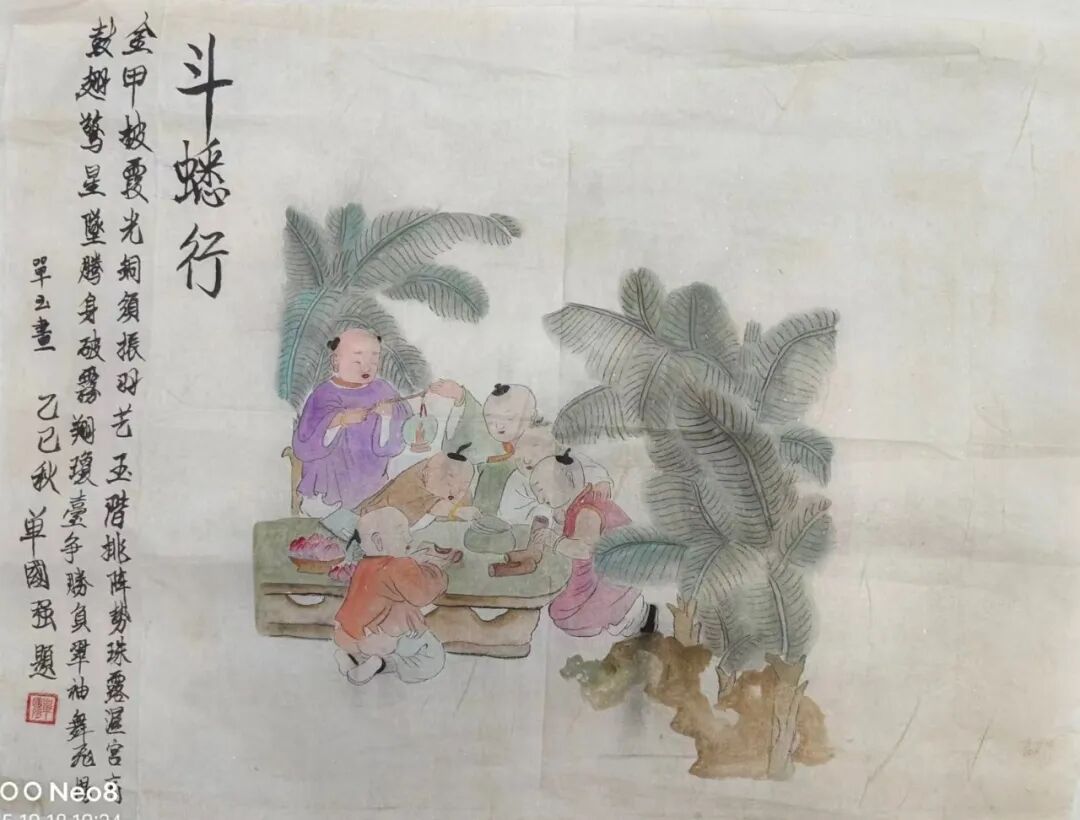 民俗系列的技法突破更具巧思:《耍玩具》以“前倾式构图”强化孩童动态感,打破传统工笔“静态平衡”惯性;《斗蟋行》用“局部特写”聚焦孩童手部与蟋蟀罐的互动,让画面叙事更具张力。这种“古法为基、当代为魂”的实践,实现了“传统笔墨现当代表达”的突破。