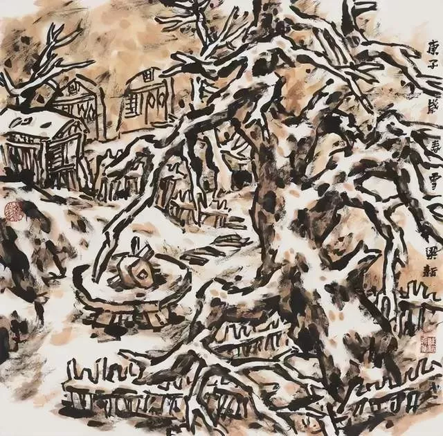 梁耘 《春雪》 纸本设色 69cmx69cm 2020年