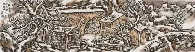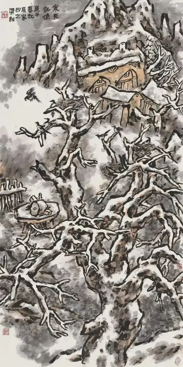 梁耘 《山乡雪霁》 纸本焦墨 180cmx49cm 2020年