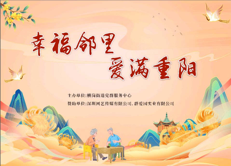 丹桂沁心脾,秋阳暖人心。在重阳节这个承载尊老敬老传统的特殊日子里,2025年10月29日下午,由横岗街道党群服务中心主办,深圳网艺传媒有限公司、群爱园实业有限公司联合赞助的“幸福邻里 爱满重阳”主题活动,在横岗街道群爱园老年人服务中心温情启幕。活动不仅为辖区老人与居民搭建了邻里交流的平台,更以实际行动弘扬中华传统美德,让“敬老、爱老、助老”的新风尚在横岗落地生根。
