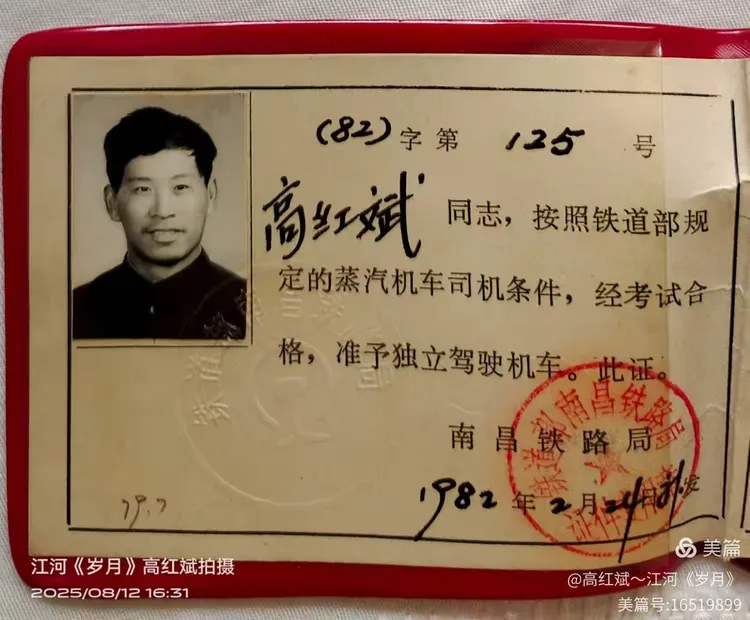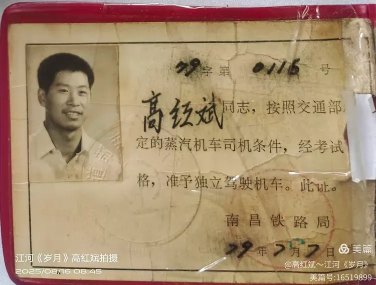 那是一段用汗水与青春丈量的岁月。司炉、副司机……每一个岗位都浸透了奋斗的痕迹。而所有的等待与磨砺,都在 1979年7月7日那一天,绽放出最耀眼的光彩——我晋升为蒸汽机车司机了!在那个年代,我是整个上饶机务段最年轻的火车司机。这份荣耀,至今想起,仍让我心潮澎湃。