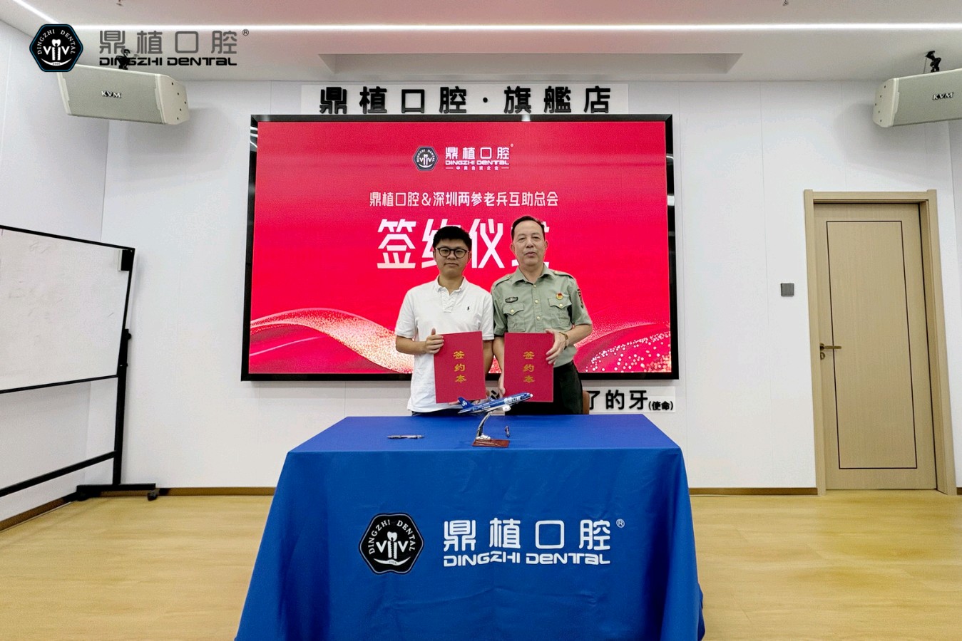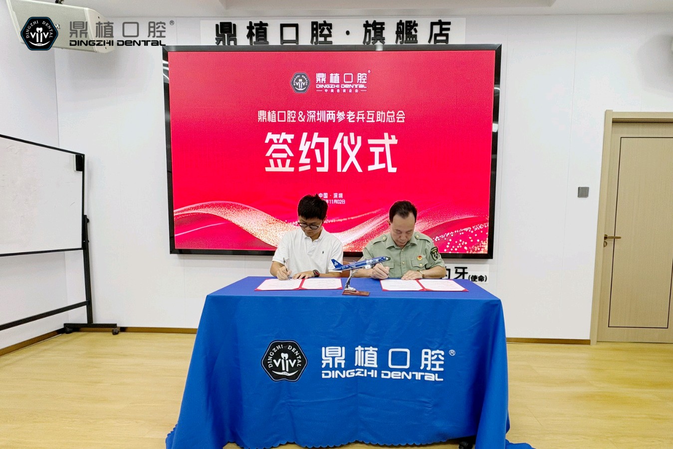当天,深圳两参老兵互助平台总会与鼎植医生集团正式签署关爱老兵口腔健康战略合作协议,一场以“致敬英雄、守护健康”为主题的公益行动,在鹏城大地上温情启幕。走进鼎植口腔多功能厅,拥军氛围扑面而来。电子屏上“向老兵致敬 为健康护航”的标语格外醒目。来自深圳两参老兵互助总会的十多名老兵代表身着07式,精神矍铄地端坐席间,眼神中既有对过往军旅岁月的追忆,也饱含着对此次口腔健康关爱活动的期待。 “老兵们曾用青春和热血捍卫家国安宁,如今他们的健康福祉,理应由我们用心守护!”鼎植医生集团首席运营官、深圳事业部总经理黎冲亚的致辞掷地有声。他详细介绍了鼎植作为集口腔医疗连锁管理、机构投资、医学教育和供应链于一体的生态型集团,深耕长三角与珠三角,布局30余家机构,更携手上海九院院士团攻克多项口腔医疗难题。其自主研发的VIIV牙种植体系列技术入选《2020上海科技成果转化白皮书》,“穿顺种植”“穿翼板种植”等专利技术,彻底填补了国内相关临床手术空白,实现了“即刻种植、即刻负重”,让缺骨、高龄等疑难病例患者也能快速拥有好牙。 “这份关爱,说到了我们老兵的心坎里!”深圳两参老兵互助总会张迅友会长在发言中动情回应。他表示,老兵群体中不少人因早年艰苦的军旅生活,饱受口腔问题困扰,却常因治疗费用高、流程繁琐望而却步。鼎植口腔的公益之举,不仅为深圳老兵们带来了专业的医疗资源,更彰显了爱心企业对退役军人的尊崇与敬意,“这份跨越军民的深厚情谊,值得我们永远珍藏”。随着音乐响起,签约仪式进入高潮。黎冲亚与张迅友并肩走上签约台,在全场老兵的见证下,郑重签署了战略合作协议。笔尖落下的瞬间,现场掌声响起,定格成鹏城拥军爱军的温暖画面。根据协议,鼎植口腔将为深圳两参老兵提供专属口腔健康服务,包括免费口腔检查、洗牙、拍片,以及专利种植牙技术特别优惠等多项福利,用专业力量为老兵口腔健康保驾护航。签约仪式刚结束,老兵们便在医护人员的引导下,有序开展免费洗牙、拍片等体验项目。