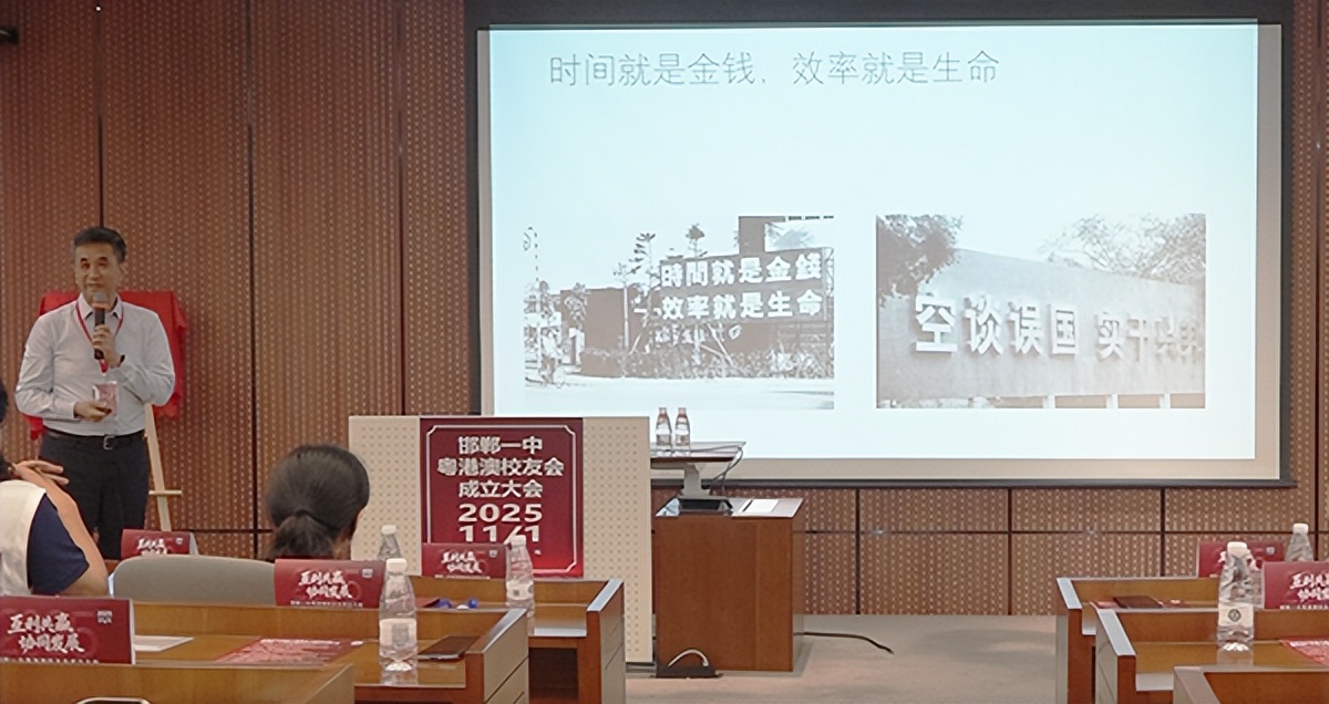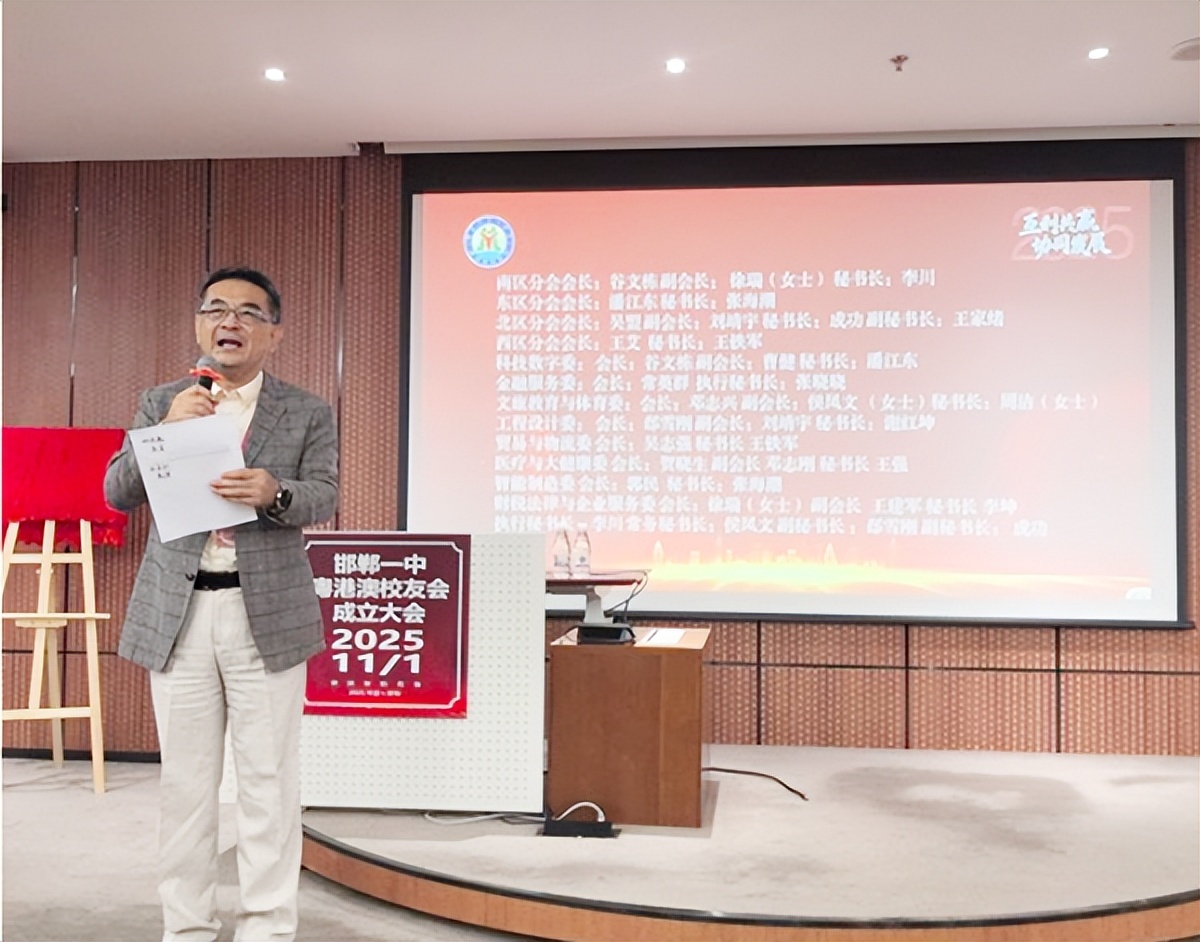 2025年11月1日,以“互利共赢 协同发展”为主题的“五位一体思路下粤冀双飞地研讨会暨邯郸一中粤港澳校友会成立大会”在深圳成功举行。此次活动在京津冀协同发展与粤港澳大湾区建设两大国家战略交汇的背景下,聚焦粤冀两地合作新机遇与校友情谊联结,吸引了近100名政府代表、校方领导、行业专家及粤港澳地区校友精英共聚一堂。大会由校友郄雪刚主持。