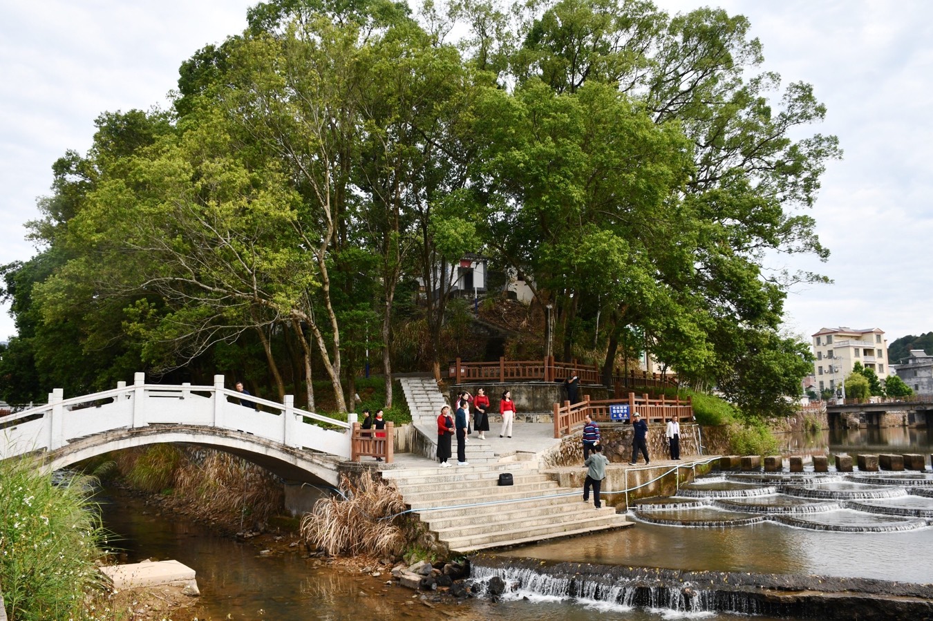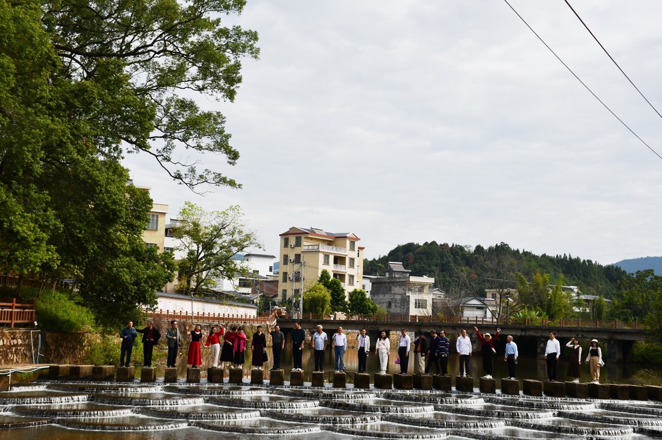 采风团首站抵达河头镇文旅中心“河头印象馆”。在这里,文艺家们通过图文影像与实物展陈,全面了解了河头镇的历史沿革与文化积淀。随后,队伍漫步至网红打卡点“鱼鳞坝”,叠水潺潺与青山相映成趣,摄影家们频频按下快门,捕捉灵动瞬间。