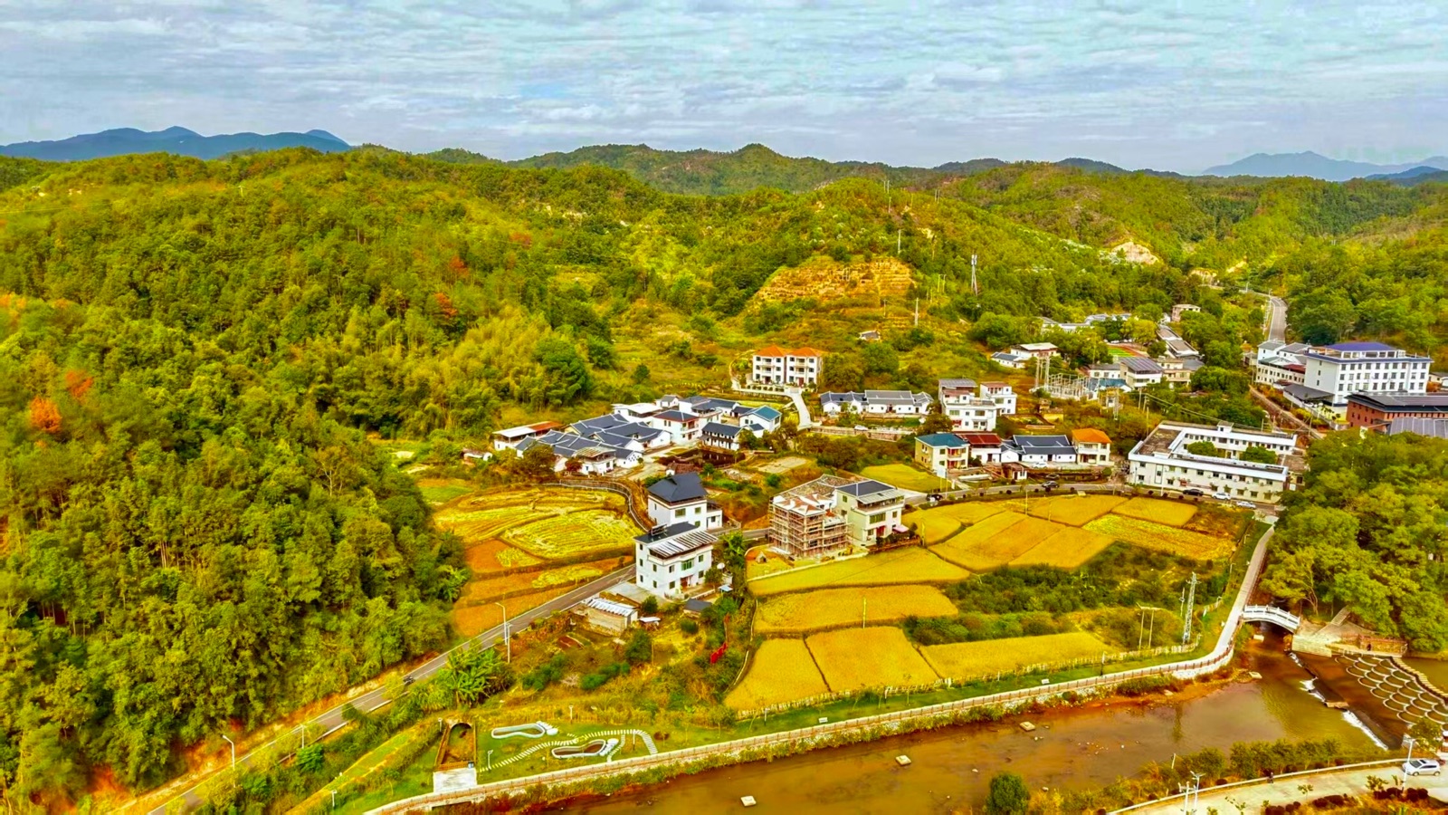 看双溪、清流绕村前,福祉牵。