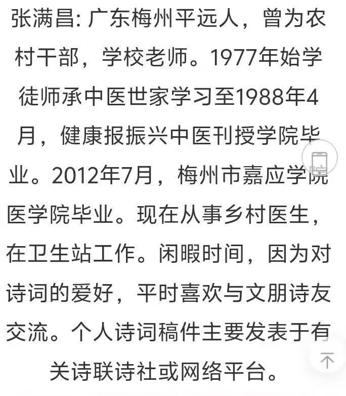 男,广东省梅州市平远县基层小吏。自嘉应学院毕业后,便扎根平远从事基层工作。幼时即倾心传统文化,于文章写作、古典诗词、中医养生、传统武术诸艺持续研习,至今未辍,并积极参与地方文化组织的相关交流活动。