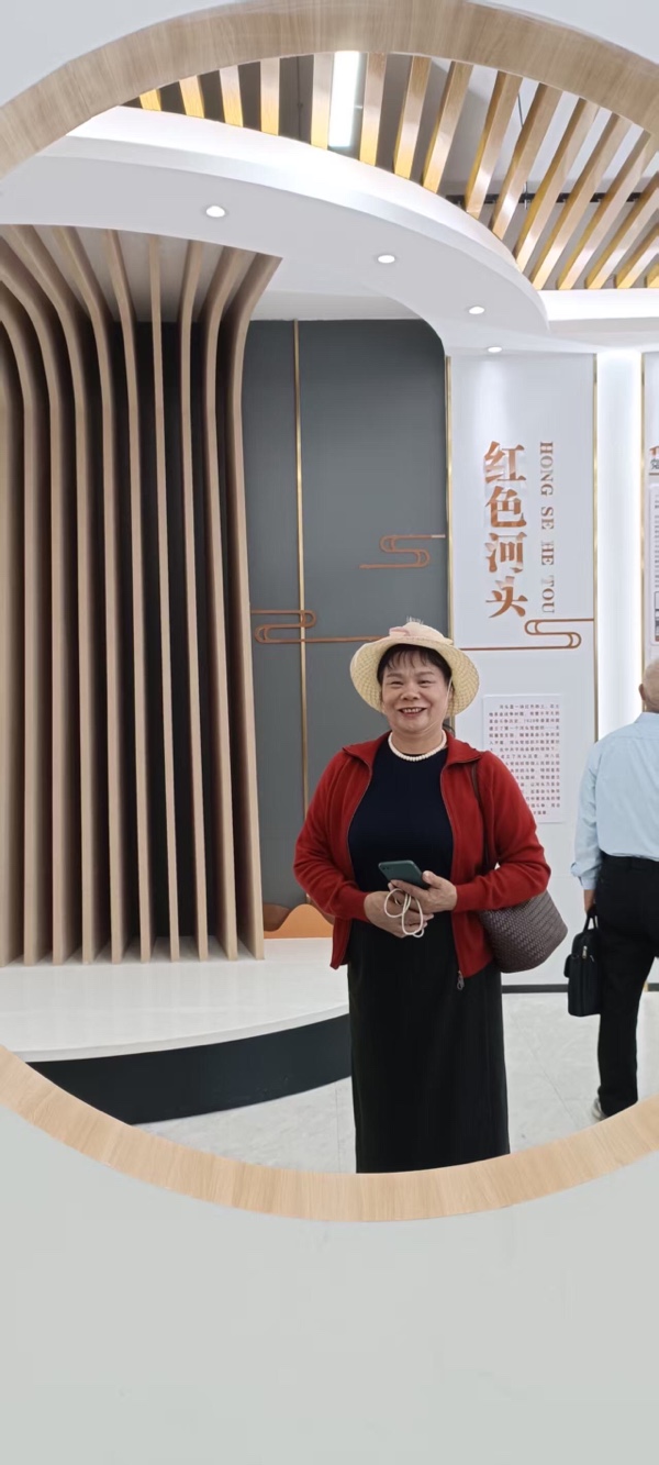 作客河头留靓影,频生恋念感情浓。