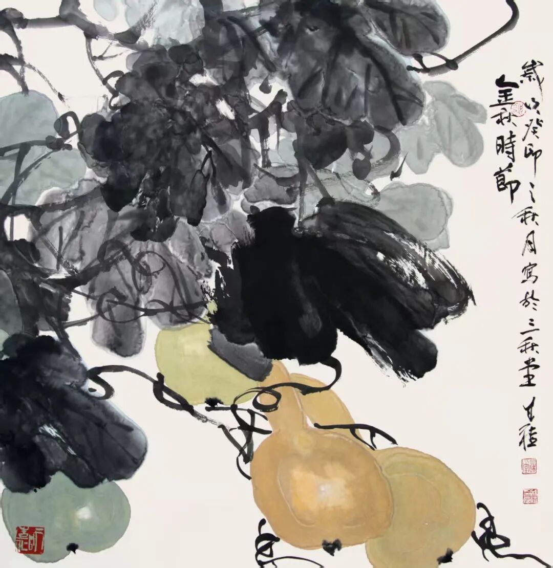 我欣赏吕成禧的花鸟画,因为他的作品体现了他的艺术主张,追求笔墨的意象造型。他长期研习传统中国画的章法和笔墨规范,虔诚地向古代典范作品和前辈大师学习,他的画受石涛、八大、吴昌硕、齐白石的影响,在技巧上借鉴和学习前人,却又不停留在模仿前人的艺术风格上,力求画出自己的面貌,他懂得齐白石的名言“学我者生,似我者死”的道理。他之所以能做到自己的作品学古人而又不似古人,主要靠两方面的努力,一是重视认真观察和研究客观自然,注重写生。