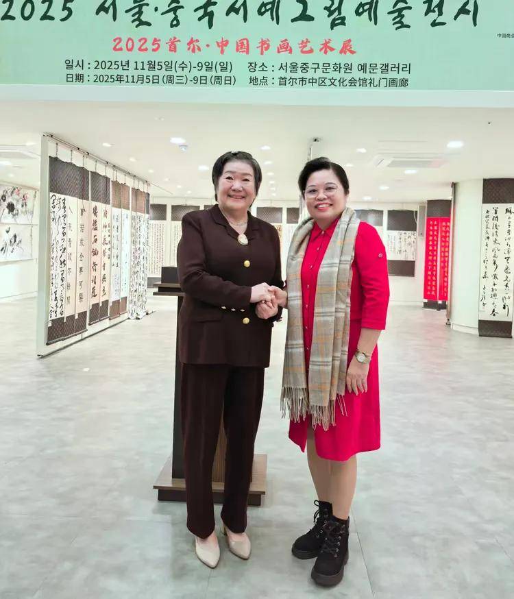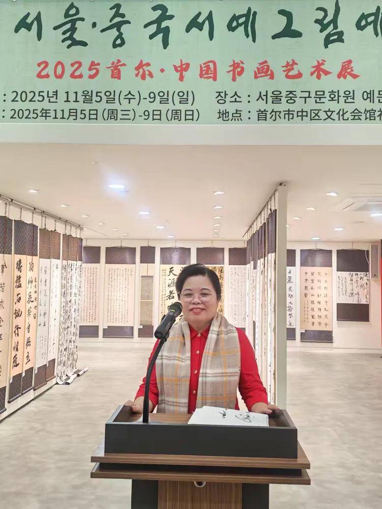 11月5日下午“2025首尔·中国书画艺术展”在韩国首尔开幕,活动由三月三书社、艺链全球、韩国国际美术家协会、首尔中区文化院共同主办,集中展出中国优秀书法美术作品近百幅。本次展览以“笔墨传情 文明互鉴”为主题,传承中韩两国水墨书画共有的文化基因,承载“肇自然之性 成造化之功”的东方哲学意蕴。通过中国优秀书画作品展示,践行“以艺术讲好中国故事、构建人类命运共同体”的文化使命。