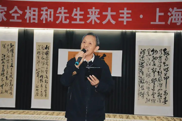 江苏省原大丰市委统战部部长陈仕祥先生;上海市松江区原区委常委杨印龄先生;中国石化书法家协会首届副主席、兰亭奖获得者仝相和先生;河南省濮阳市政协二级巡视员史庆林先生;中原油田现任书法家协会主席杨文代先生;白俄罗斯国家文联河南省总代表赵财领先生均发表了热情洋溢的讲话感慨致辞!(全文另发)
