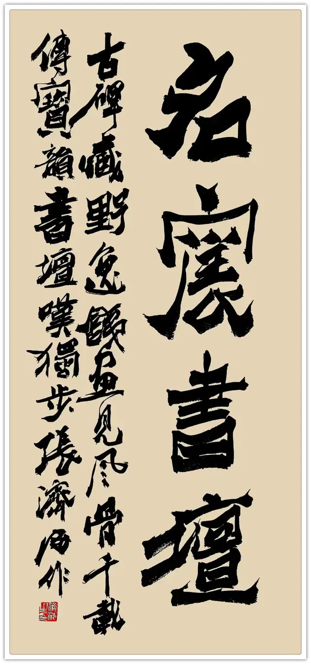 从军营中的笔墨爱好者到书坛立派大家,张济海的书法之路始终带着军旅印记。纪律意识赋予其法度之严,坚毅品格铸就其力度之刚,家国情怀拓展其格局之阔。这些军旅风骨与传统笔墨的碰撞融合,不仅让“爨八体”得以载入《中国书法大字典》,更证明了艺术风格的形成从来离不开生命体验的滋养。在张济海的书法中,我们看到的不仅是笔墨的精妙,更是军人品格与艺术追求的完美交融,这正是其作品能跨越国界、震撼人心的根本所在。