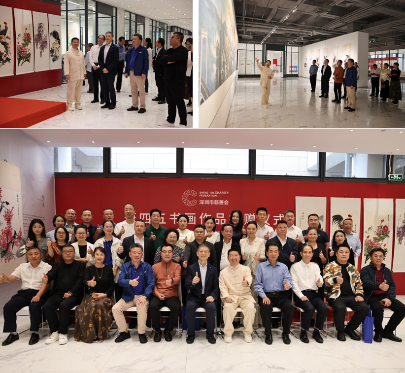 活动现场,萧四五捐赠了境象-萧四五人文书画作品巡回展(深圳站)的主画《春天里的故事》和另外10幅人文作品,每一笔墨都承载着对生活的热爱与对公益的热忱。“艺术不该只停留在展厅的画框里,更应走进生活、传递力量,而慈善正是让艺术发光发热的最好桥梁。”萧四五在欢迎辞中表示,希望通过作品记录时代、传递温暖,带动更多人加入公益行列,让艺术与善意在深圳这片热土上生生不息。