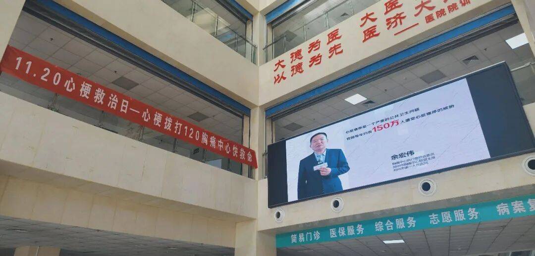 救治日当天,院内活动氛围持续升温。医院大厅电子大屏循环播放心梗救治科普视频,以直观生动的画面讲解胸痛应急处置要点,传递“时间就是心肌,时间就是生命”的核心理念,吸引群众驻足学习。
