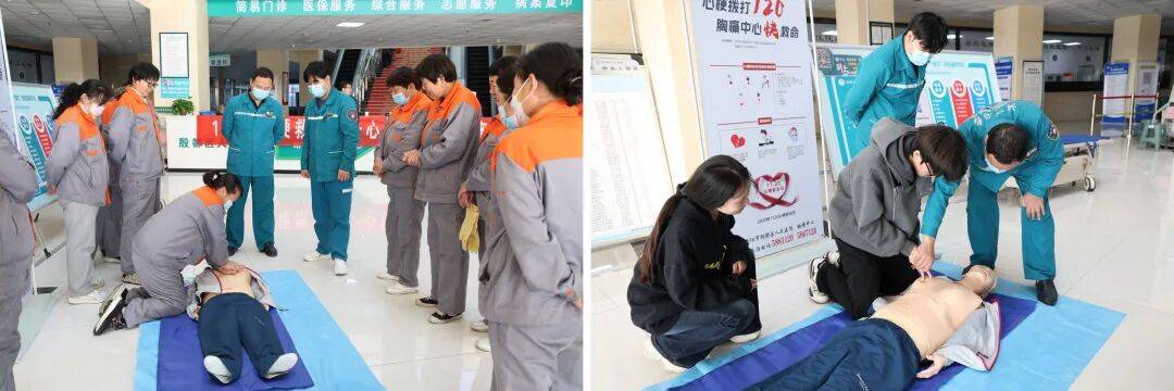 心肺复苏实操培训环节更是人气高涨,急诊科骨干医护人员以专业演示+手把手教学的方式,详细讲解心肺复苏的操作要领、按压深度、呼吸频率等核心要点,从判断意识、拨打急救电话到胸外按压、人工呼吸,每一个步骤都精准示范、耐心指导。现场群众热情高涨,纷纷主动上前实操练习,医护人员逐一纠正动作偏差,确保大家真正掌握这一救命技能。