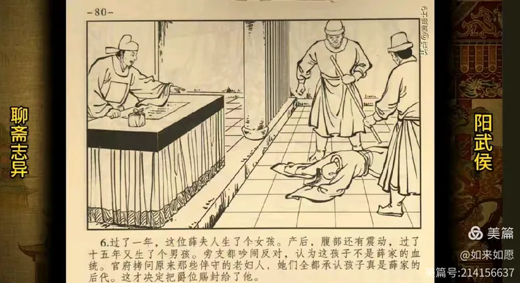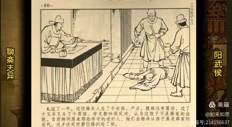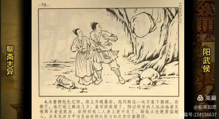 诗化聊斋本期故事阳武侯,讲述的是贵人薛禄,出生时鸦鹊覆翼,指挥守门,十八岁之前垢面垂涕,极不聪慧,及其戍辽阳,途至危崖,崩,虎逼附,而后勇健非常,丰采顿异。后以军功封阳武侯世爵。