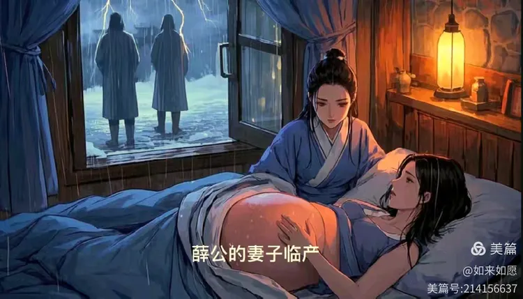 至启、祯间,袭侯某公薨,无子,止有遗腹,因暂以旁支代。凡世封家进御者,有娠即以上闻,官遣媪伴守之,既产乃已。年余,夫人生女。产后,腹犹震动,凡十五年,更数媪,又生男。应以嫡派赐爵,旁支噪之,以为非薛产。官收诸媪,械梏百端,皆无异言。爵乃定。