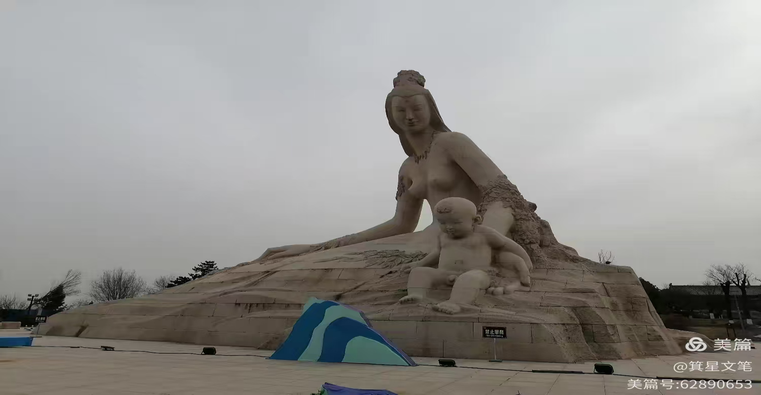 花絮1:通关古城有一座女娲雕像,一取自女娲造人的传说,一说黄河是中华母亲河。