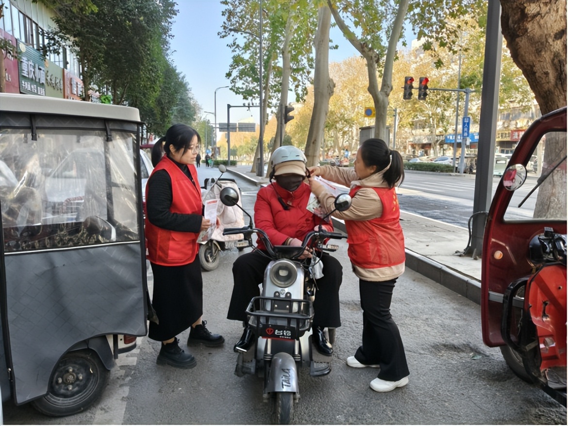 志愿者的身影并未止步于路口,更化身为一道流动的风景线。他们手持精心设计的宣传贴士,穿梭于沿街商铺与小区出入口之间。一句句朗朗上口的提醒——“红绿灯前停一停,手机暂时放一放”、“骑行戴盔不偷懒,安全跟着脚步来”,随着他们的脚步,被递到了往来居民的手中,也印在了大家的心上,让安全知识不再静止,而是声声入耳,步步相伴。
