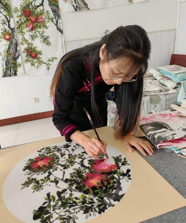 她是“中国重彩石榴画派”创始人刘林贵的嫡传弟子,画风讲究浓墨重彩,视觉冲击力极强。