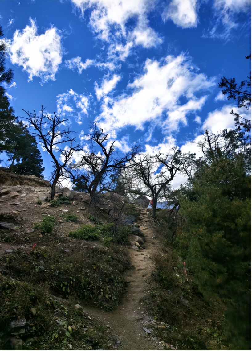 看前路是一段连续的上坡,随着海拔的升高,行走变得越来越费力,随断然决定休息片刻,再作最后的冲刺。