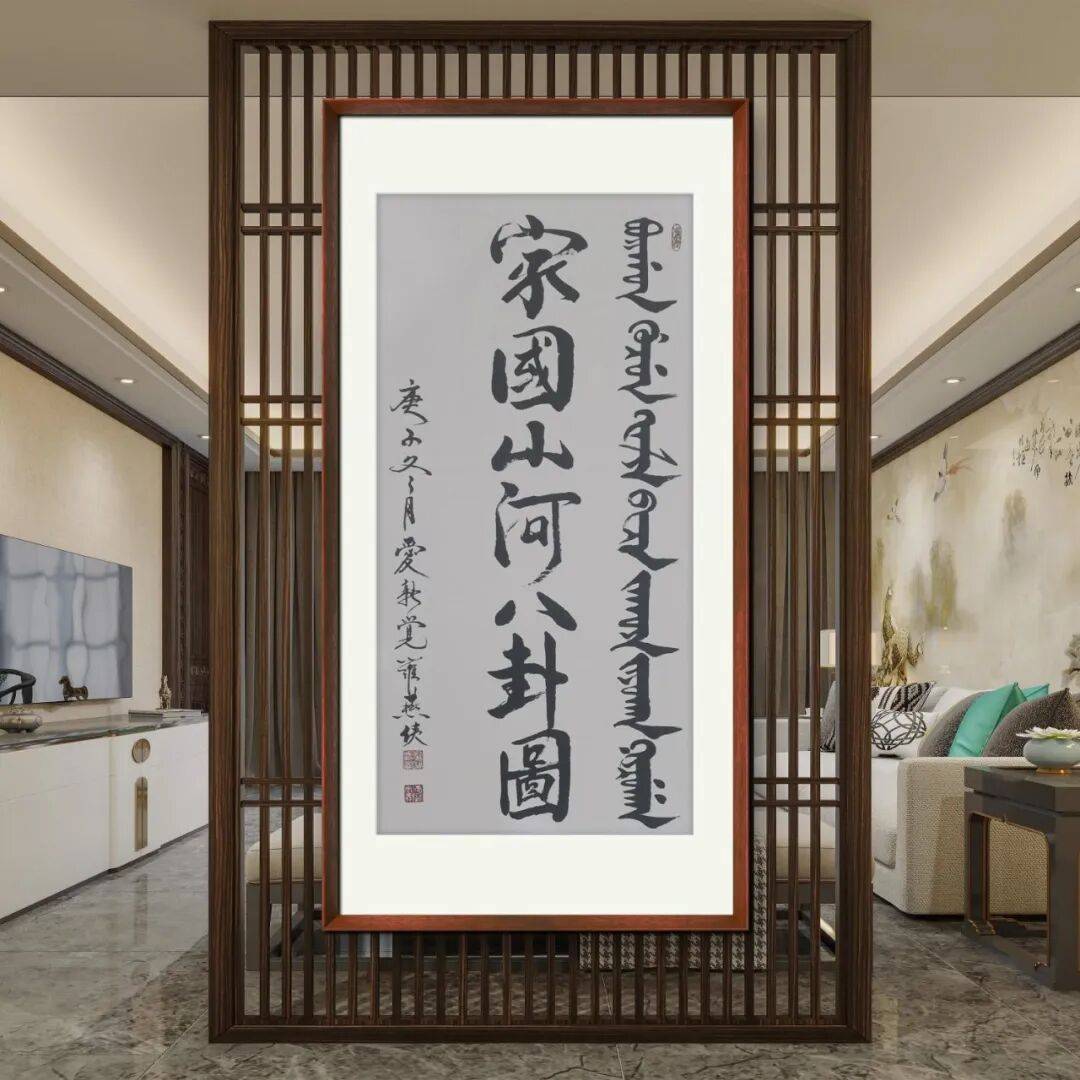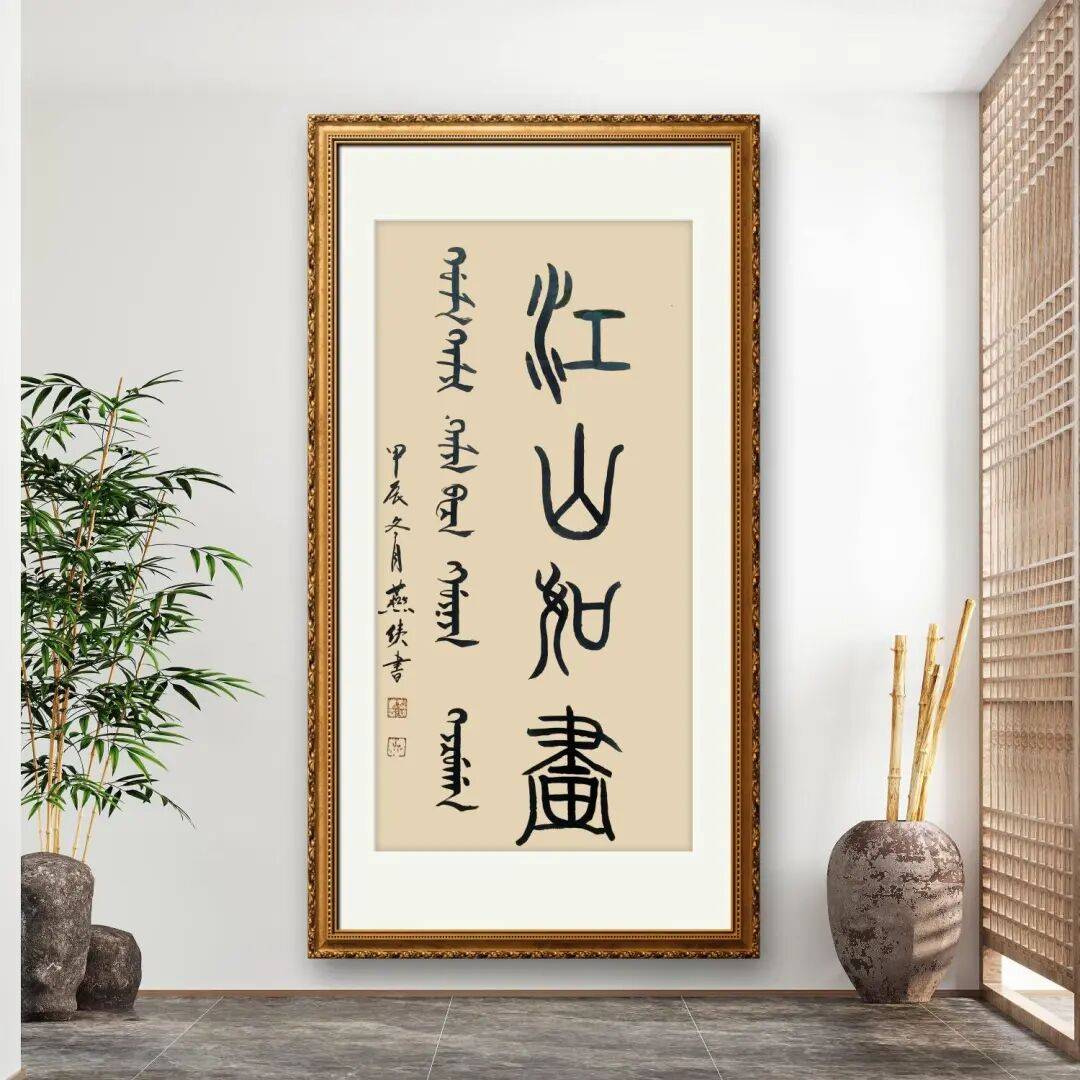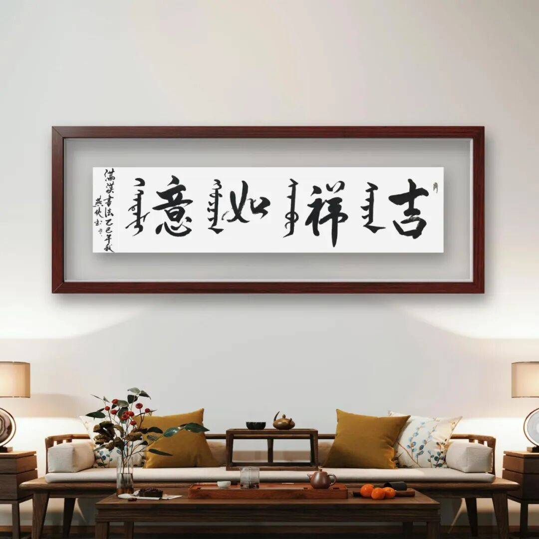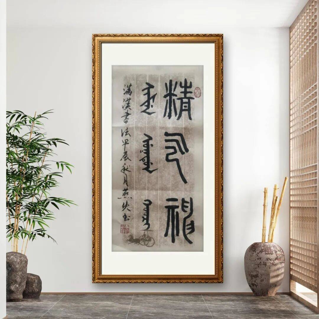 燕侠在书法艺术上的最大突破,当属“满汉书法”的创新实践。作为满汉文化融合的见证者与传承者,他深知满汉两种文化都有着深厚的底蕴,而书法作为语言文字的艺术载体,无疑是实现两种文化对话的最佳桥梁。在长期的艺术实践中,他发现满文书法与汉文书法在笔法、章法上既有差异,又存在共通之处。汉文书法历经数千年发展,形成了完善的技法体系与审美标准;而满文书法则有着独特的字形结构与书写韵律,承载着满族的历史文化记忆。为此,他开始尝试将满汉两种文字融入同一幅书法作品中,通在笔墨运用上,他将汉文书法的笔法技巧巧妙地融入满文书写中,让满文书法的线条更具表现力;同时,又以满文书法的独特韵律丰富汉文书法的表现形式,使整个作品既富有民族特色,又具备很高的艺术价值。这种创新并非简单的文字叠加,而是建立在对两种文化深刻理解基础上的艺术融合,不仅拓展了书法艺术的表现领域,更为民族文化的融合发展提供了生动的艺术范例。