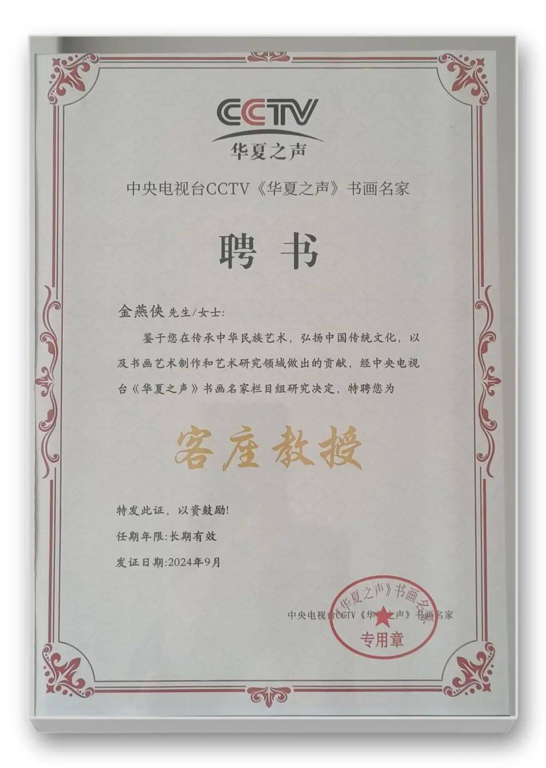 2019年滿汉书法家爱新觉罗(金).燕侠走进吉林卫视《聚星汇》栏目,荣获收藏证书。