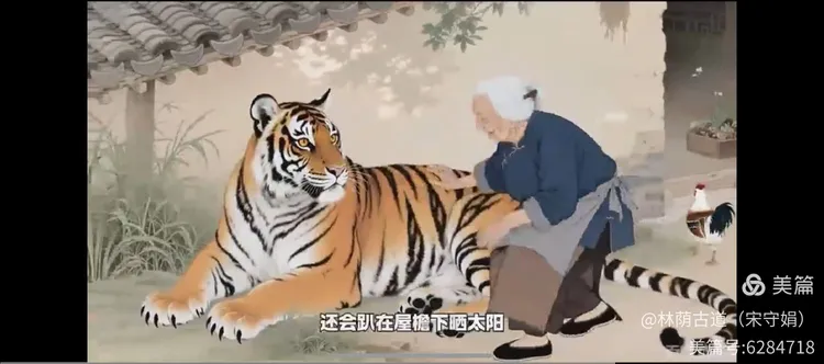 虔诚竟把山君感,忏悔怀德尽孝心。