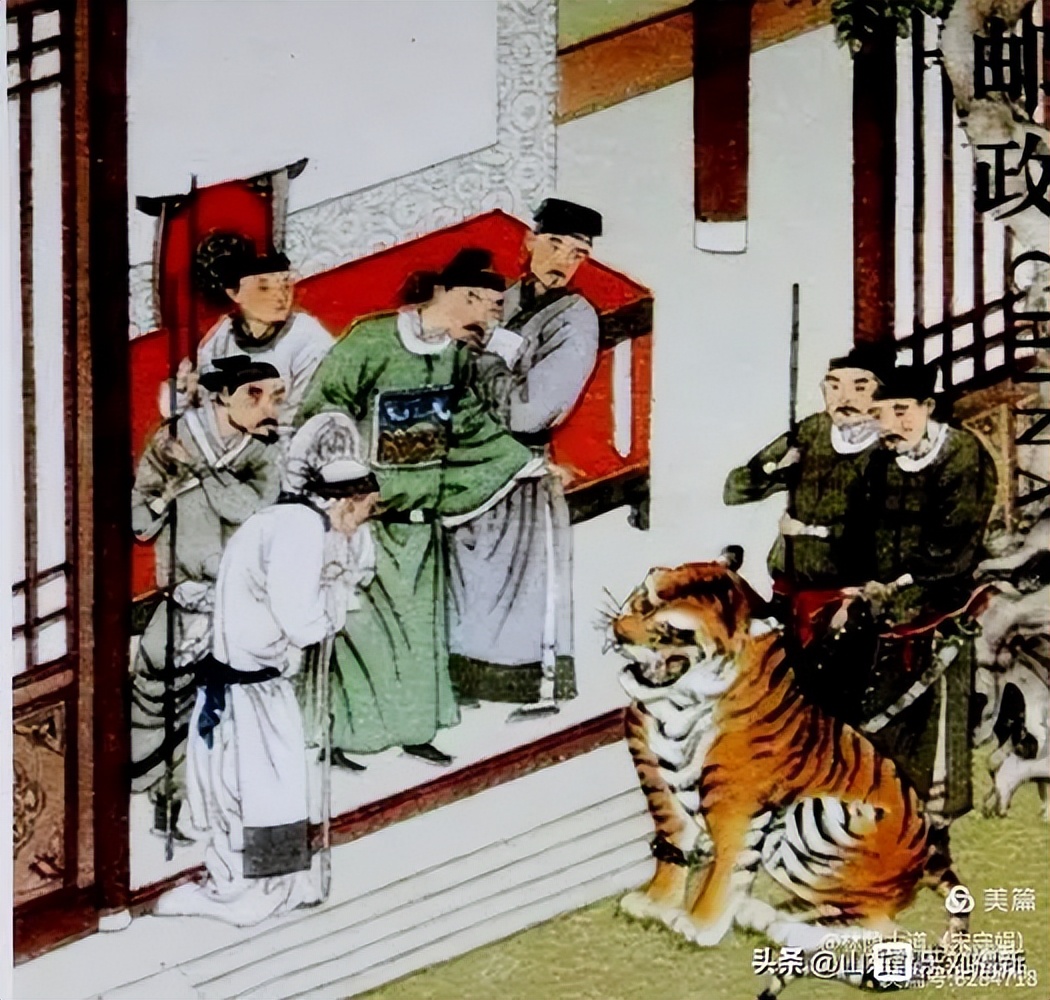 噬儿猛虎跪衙门,反哺茅檐代奉亲。