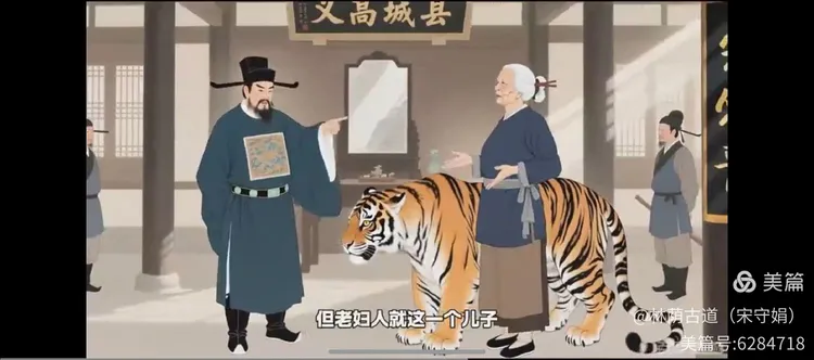 上山打柴大虫伤,母亲悲痛诉公堂。廉明县令作决断,年迈婆婆当虎娘。