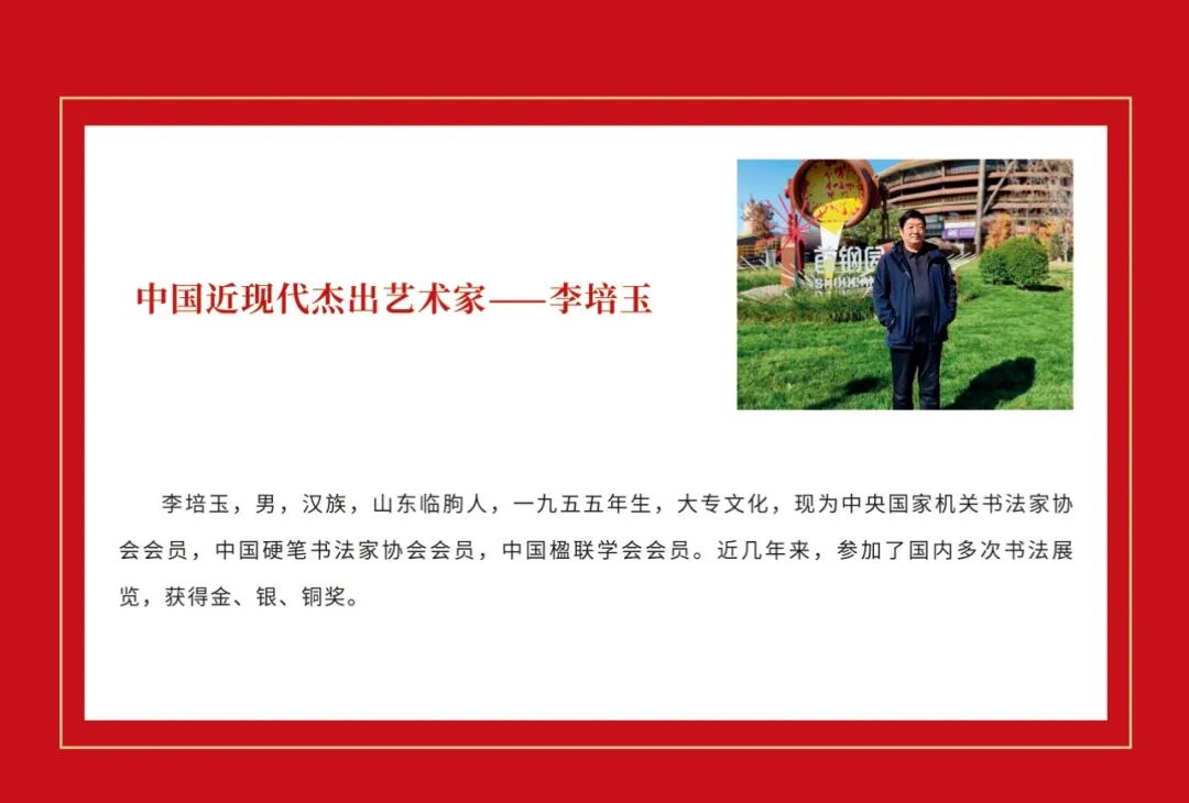 李培玉,男,汉族,山东临朐人,一九五五年生,大专文化,现为中央国家机关书法家协会会员,中国硬笔书法家协会会员,中国楹联学会会员。近几年来,参加了国内多次书法展览,获得金、银、铜奖。