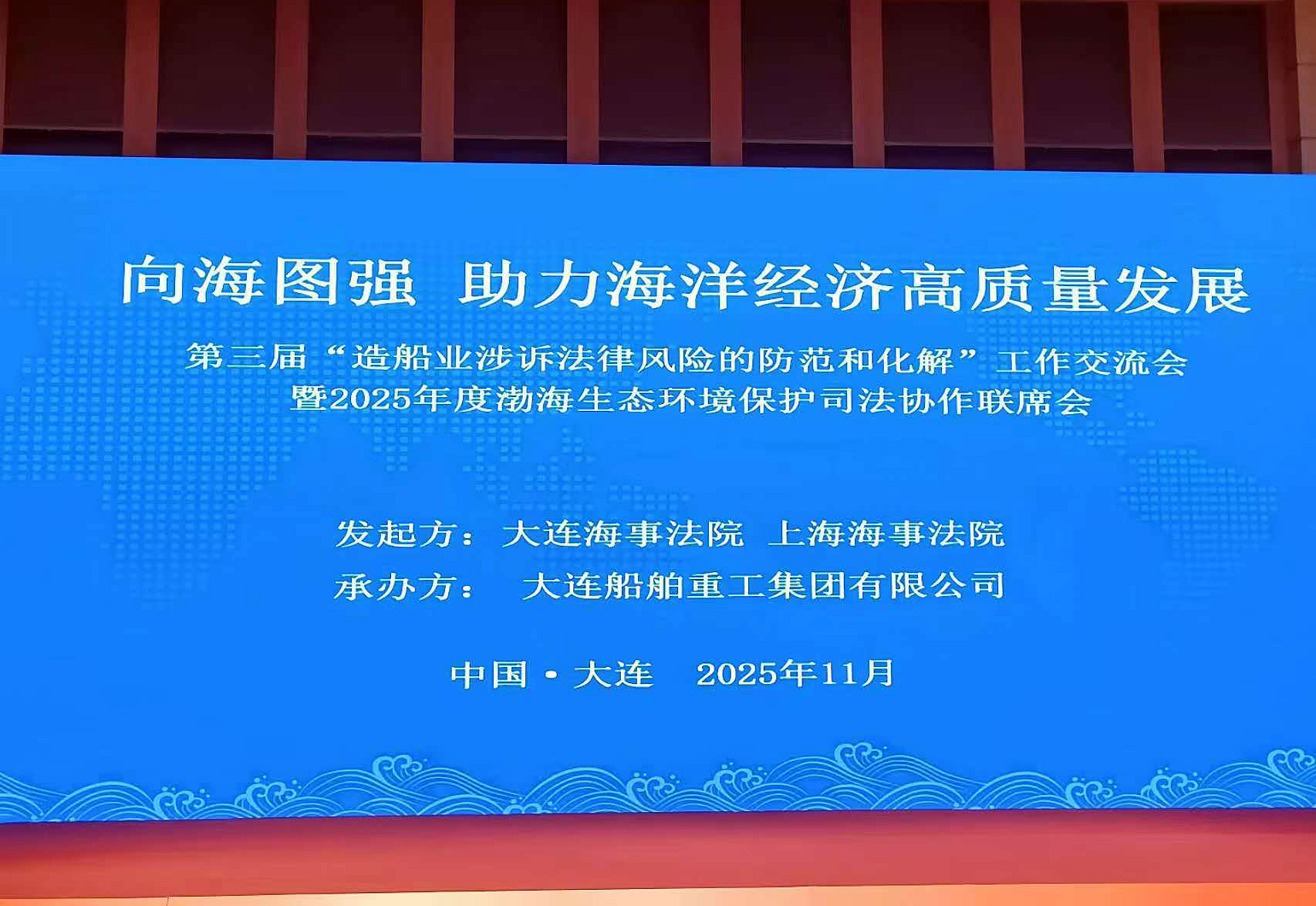 11月28日,以“向海图强 助力海洋经济高质量发展”为主题的第三届“造船业涉诉法律风险的防范和化解”工作交流会暨2025年度渤海生态环境保护司法协作联席会在辽宁大连举办。来自最高人民法院、中国船舶集团有限公司、辽宁省高院、全国11家海事法院、造船企业、高校、检察机关、涉海行政机关等百余名代表汇聚一堂,共同研讨以法治方式服务和保障海洋经济健康发展。